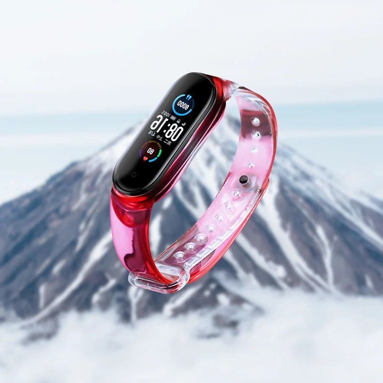Ремешок для часов Mi Band 6 5 4 3, прозрачный силиконовый сменный Браслет Для Xiaomi 6 5, умный фитнес-браслет с изменяющимся цветом, см. Свет