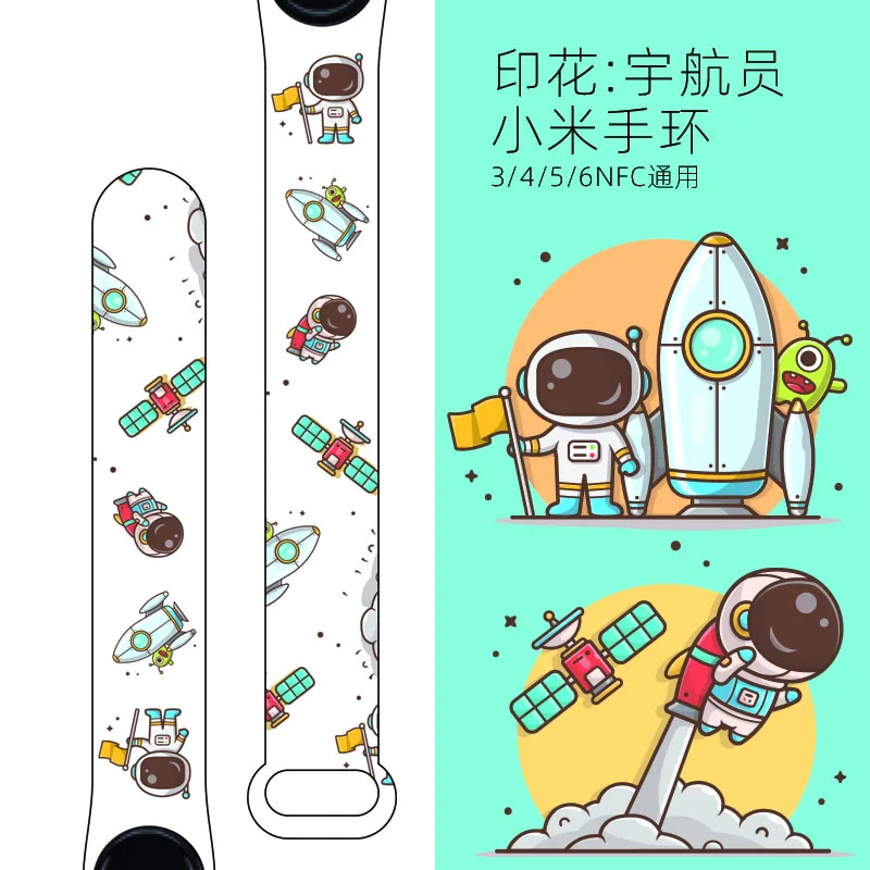 Ремешок силиконовый для Mi Band 6 5 4 3, спортивный смарт-браслет для фитнес-трекера с мультяшным принтом Xiao MI 6 5 4 3