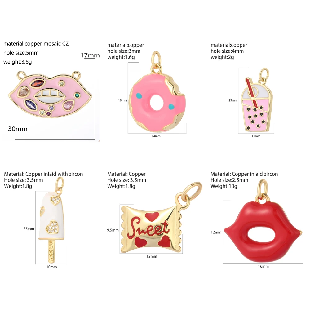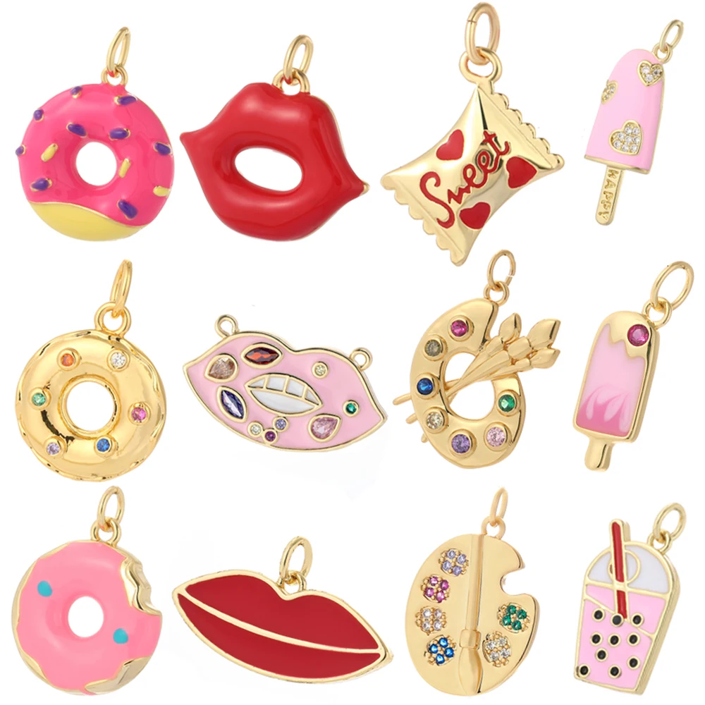 Эмалевые Подвески в виде пончика, мороженого, горячих губ, для изготовления ювелирных изделий, дизайнерские аксессуары, сделай сам, серьги, ожерелье, браслет, сделай сам, кухня, шарм, CZ