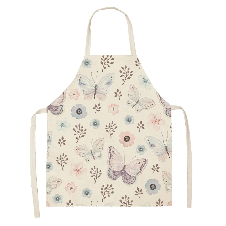 Кухонные фартуки с принтом бабочки, хлопковые и льняные фартуки для...