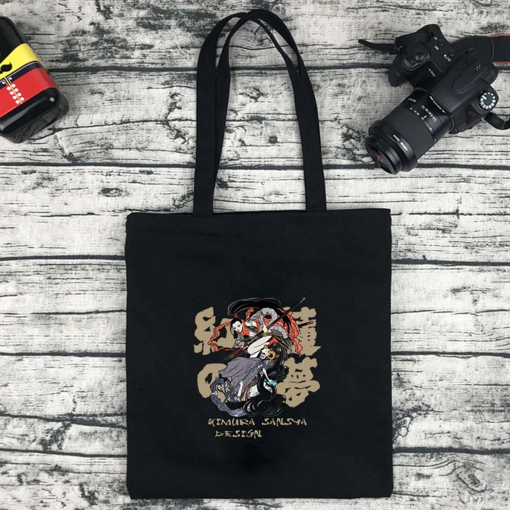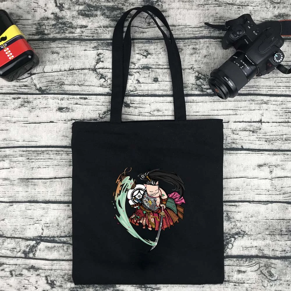 Женская сумка-тоут, сумка большой емкости, женская сумка-шоппер с аниме, складная модная черная сумка