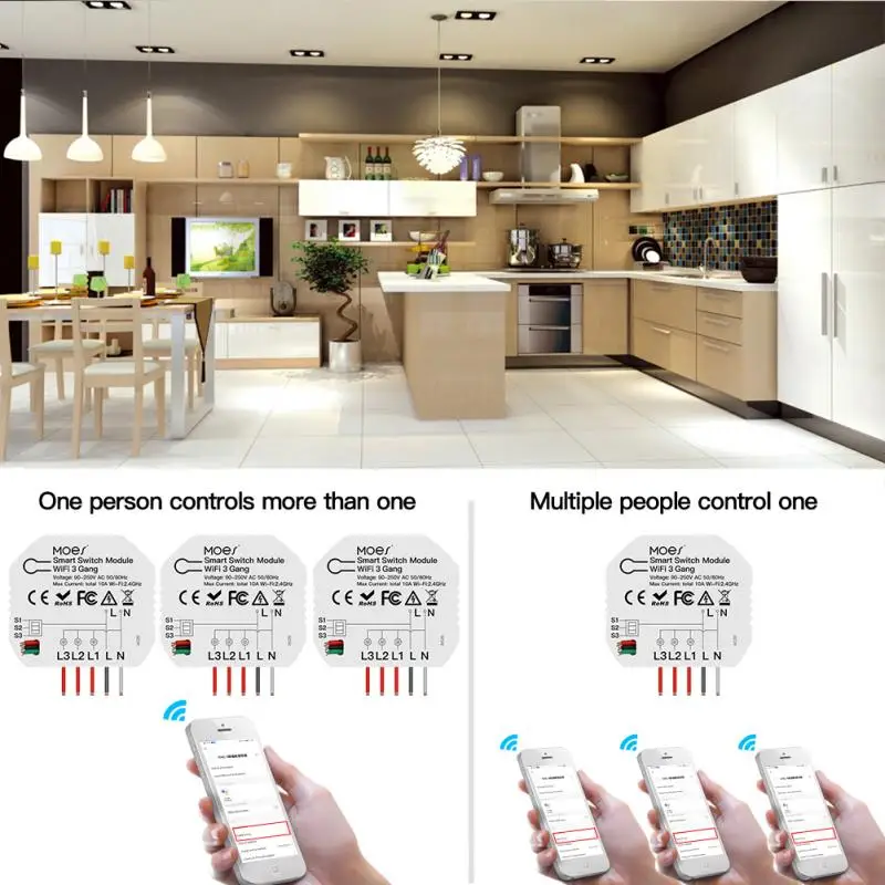 2. 3-gang Настенные переключатели поддерживается; Может использоваться в качестве 1-way или 2-полосная цепью повторного включения (2 переключателя управления 1 светильник); просто подключите к 1 из 2 выключателей и преобразуйте подключенное устройство в умный (для 2-полосной цепи)