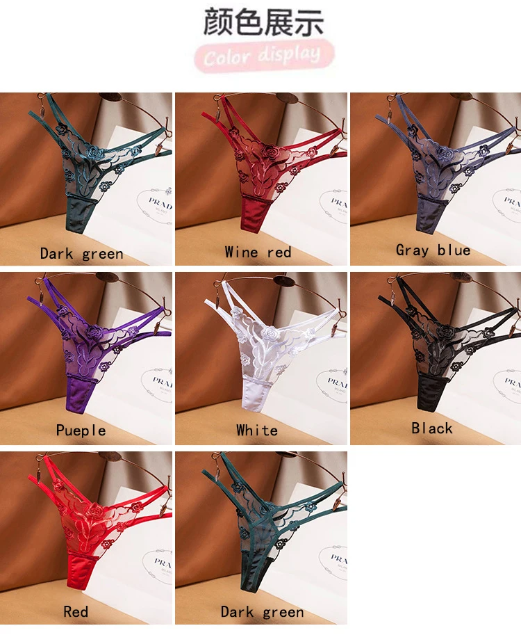 Сексуальные кружевные вышитые женские трусики, прозрачные стринги, ...