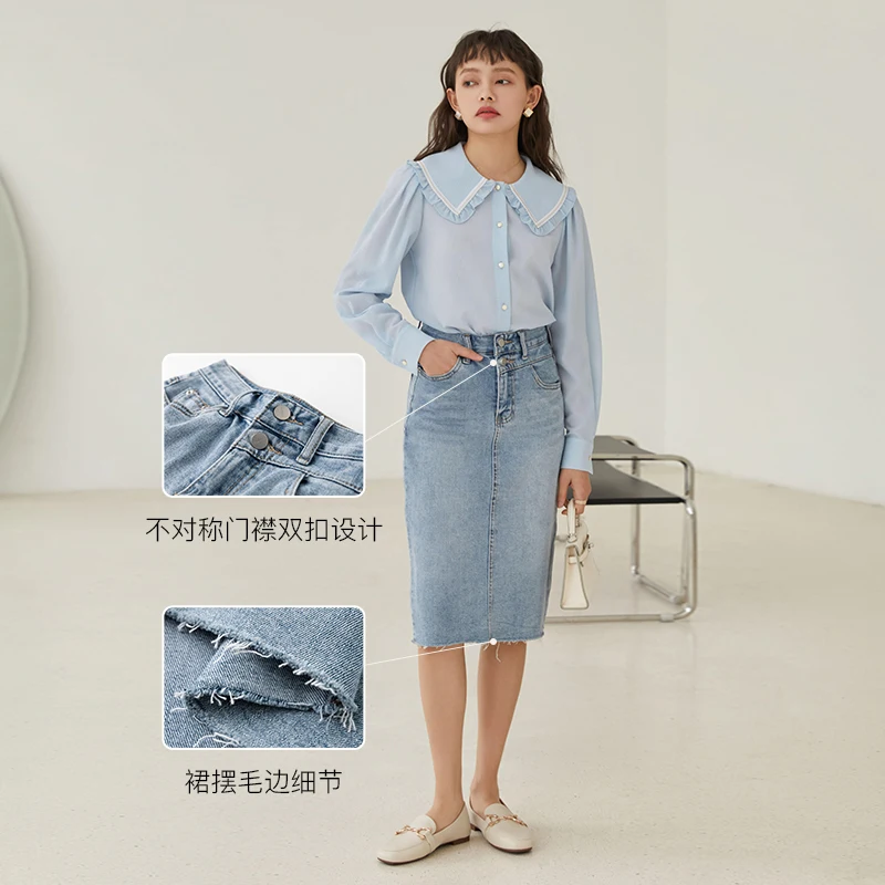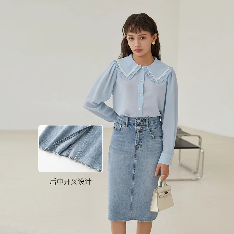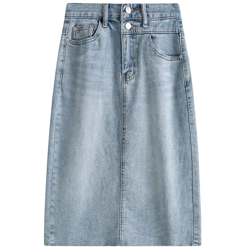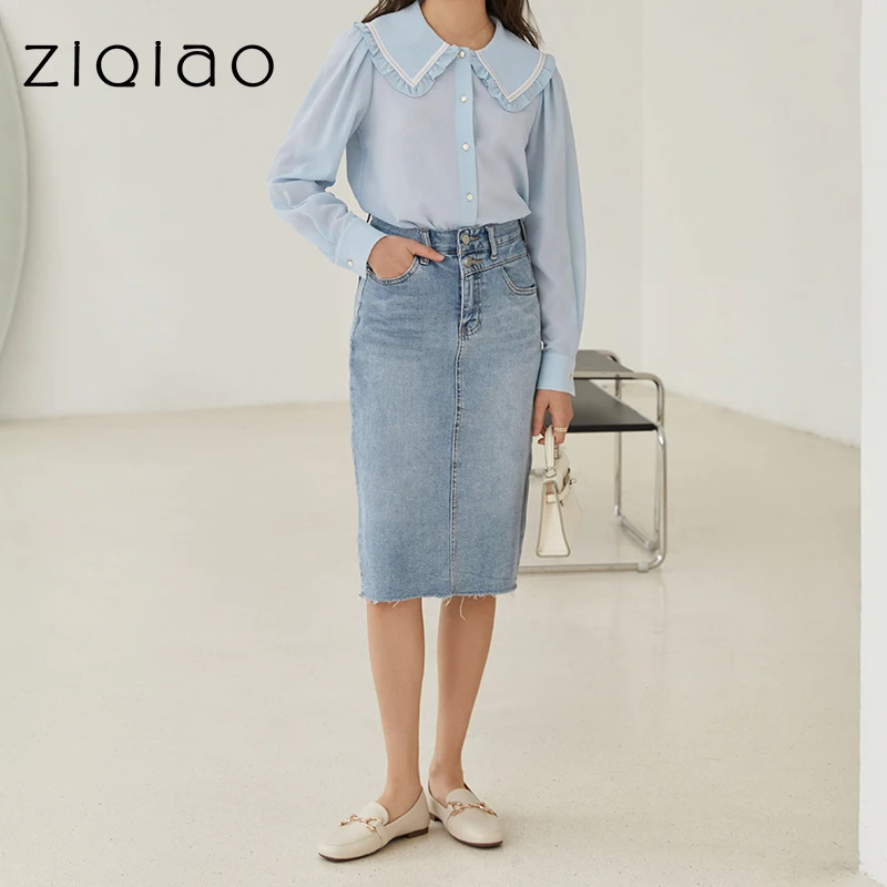 ZIQIAO, женская джинсовая синяя юбка до колен, джинсовые юбки