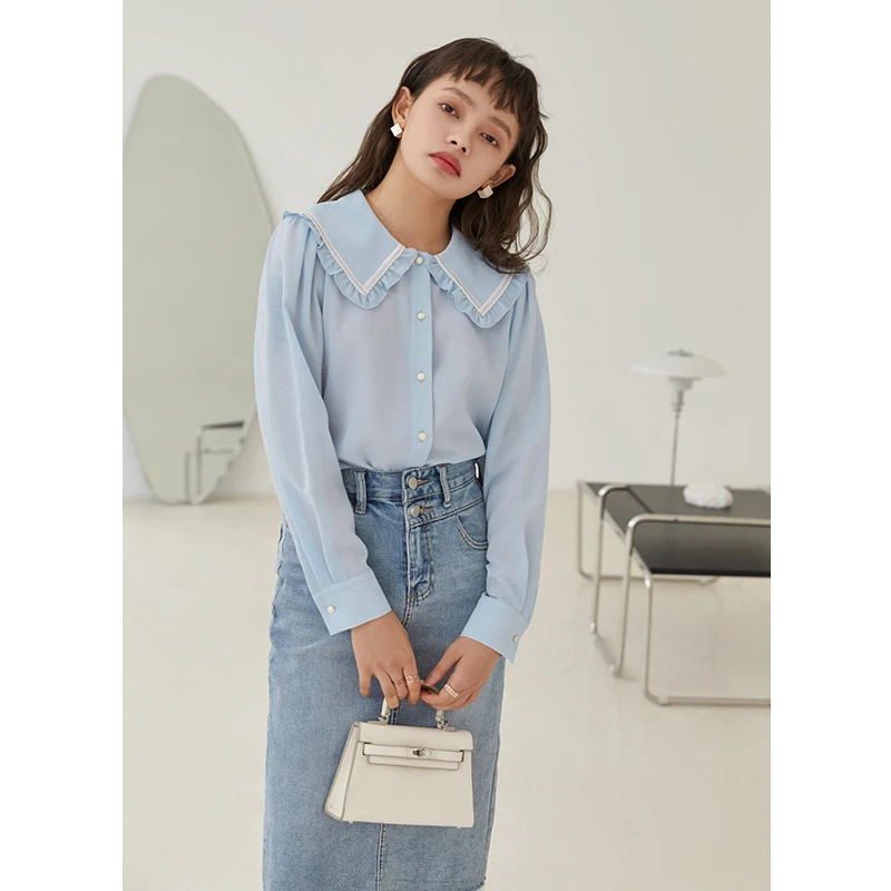 Женская кружевная рубашка DUSHU в дворцовом стиле, Новинка лета 202...