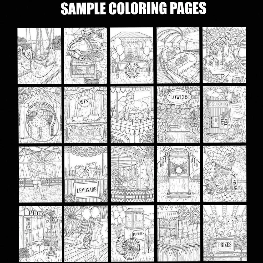 Эта книга перенесет вас в путешествие на загородную ярмарку с множеством потрясающих и подробных иллюстраций, включая веселые аттракционы и игры, стойки для еды и цветов, восхитительный веселый раунд, И многое другое!