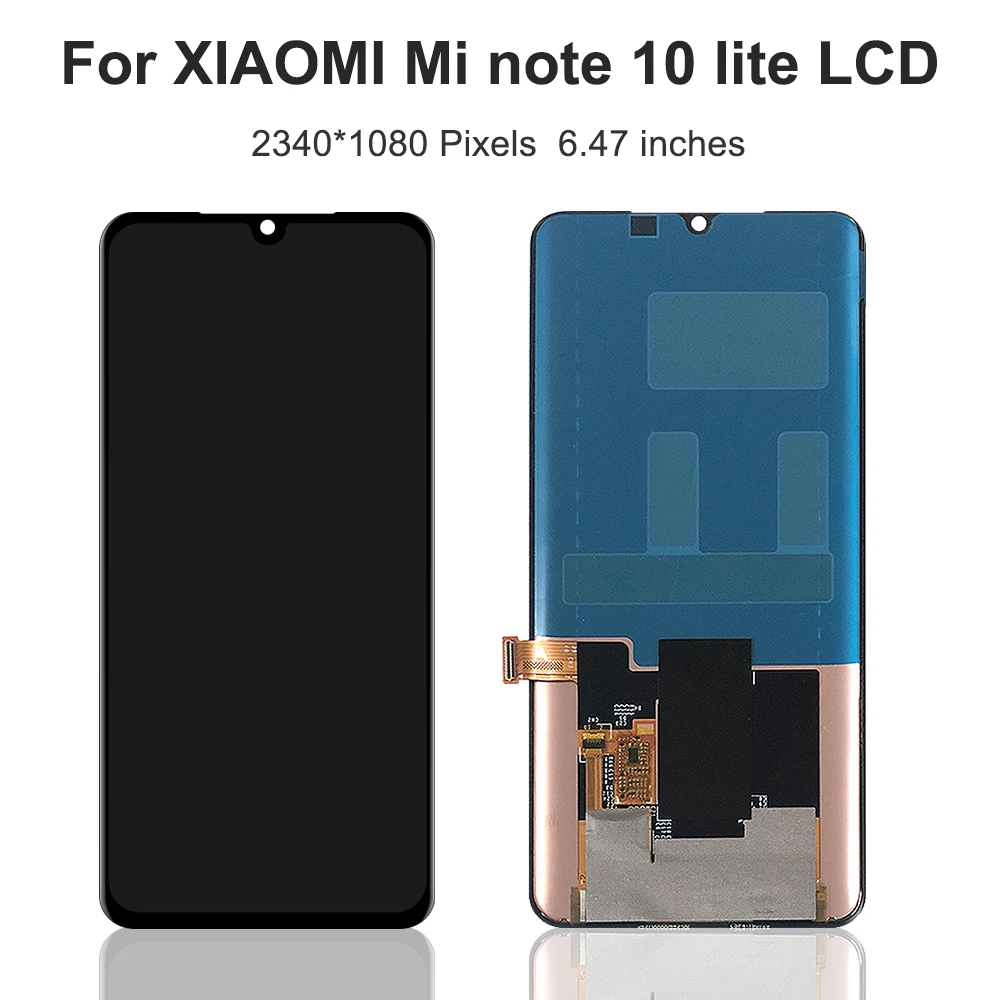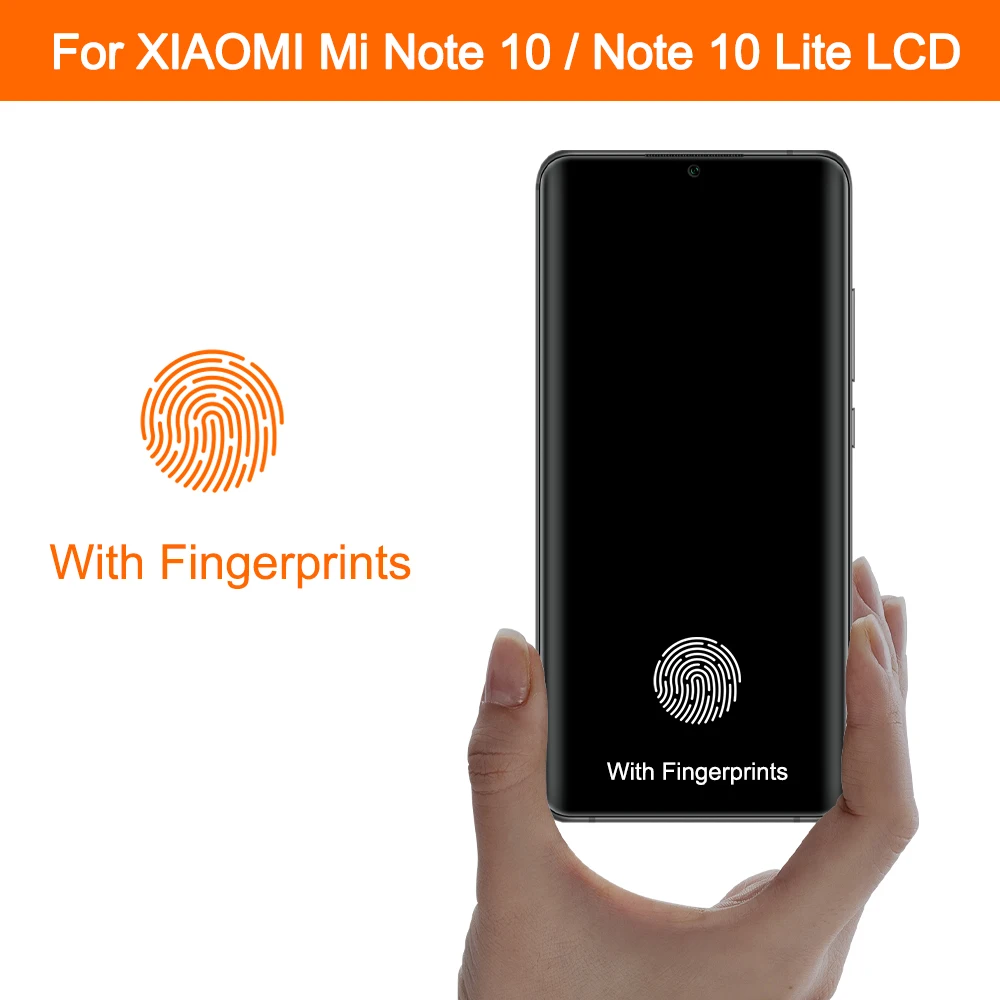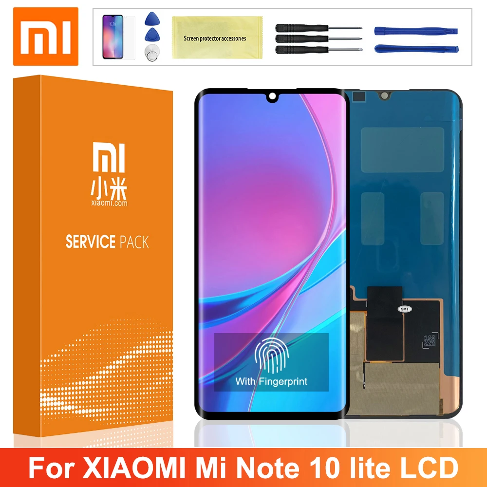 100% протестированный Оригинальный ЖК-экран для Xiaomi Mi Note 10 Lite + сенсорный экран со сканером отпечатков пальцев для mi note 10 Lite Lcd