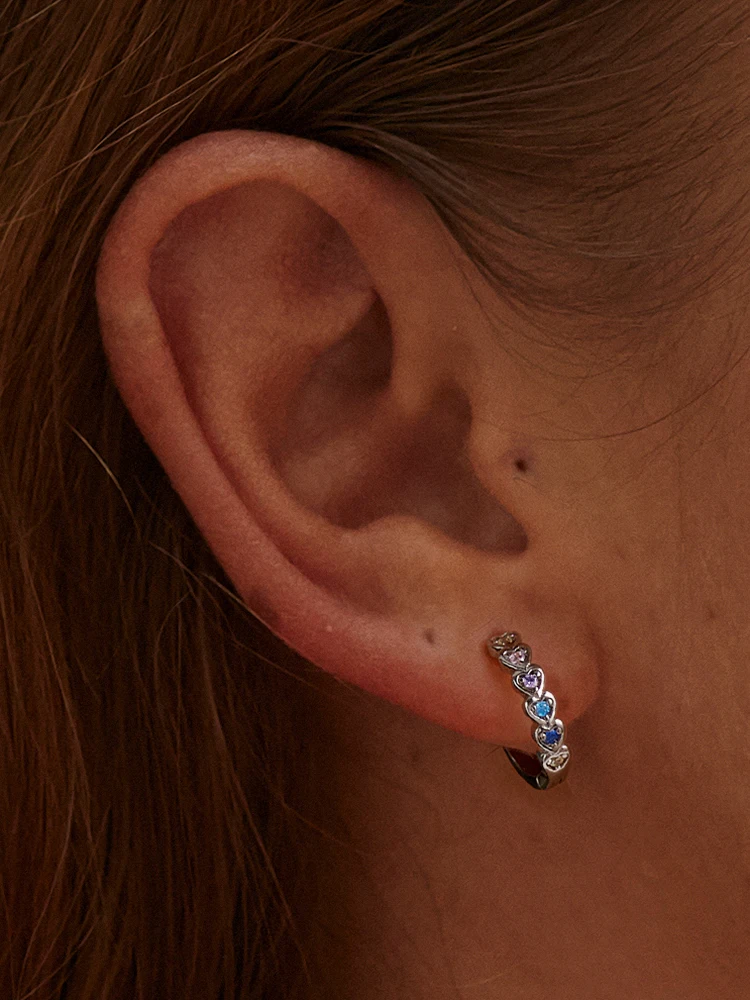 Bamoer блестящее сердце пряжки для ушей 925 пробы Серебряное штабелируемое сердце кольцо для женщин и девушек Стерлинговое серебро ювелирный набор подарок