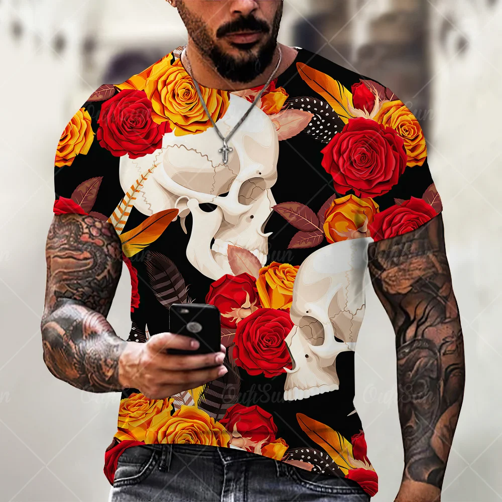 Модная классическая мужская футболка с 3D-принтом черепа, уличная о...