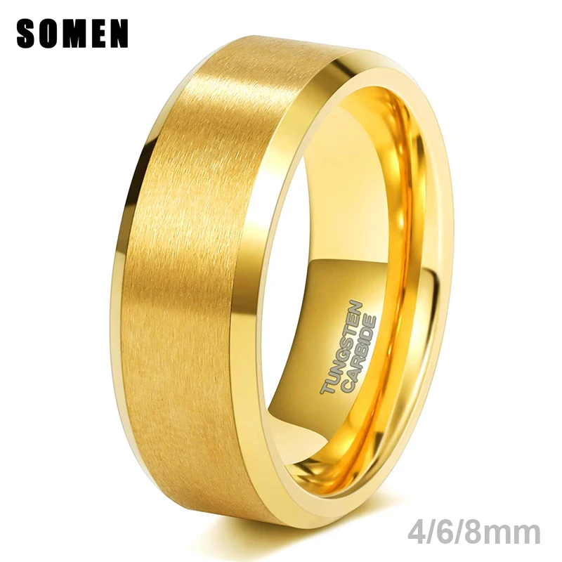 Somen позолоченное матовое вольфрамовое мужское обручальное кольцо для женщин 468 мм широкое кольцо Роскошные ювелирные изделия на годовщину подарок для пары