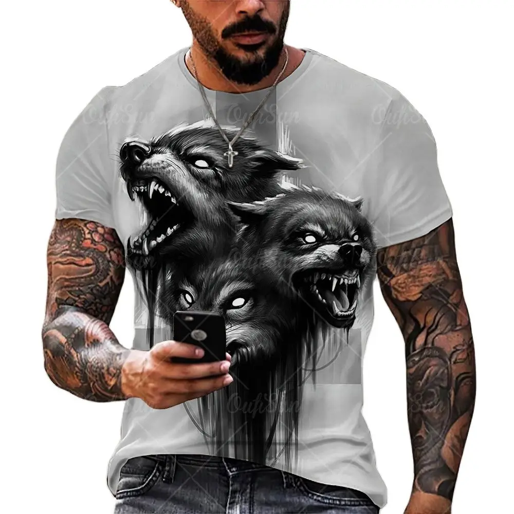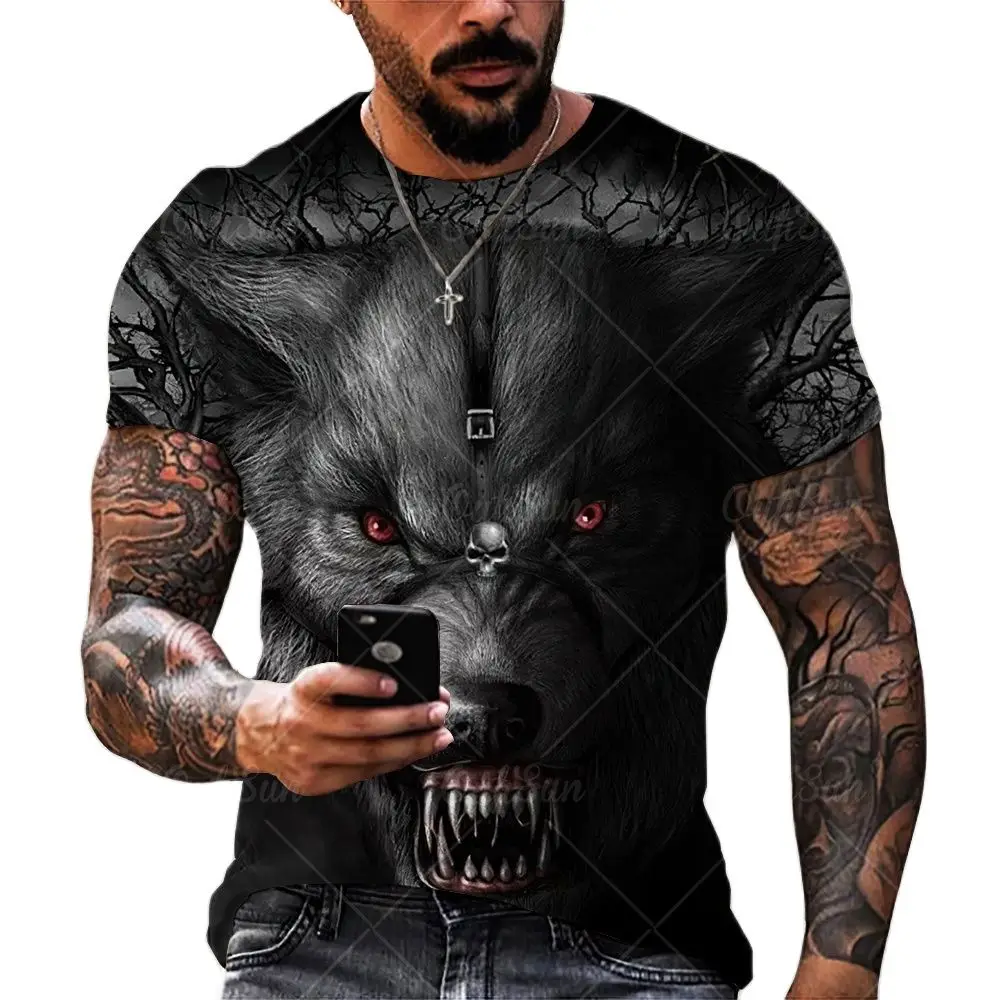 Футболка мужская с коротким рукавом и круглым вырезом, с принтом волка