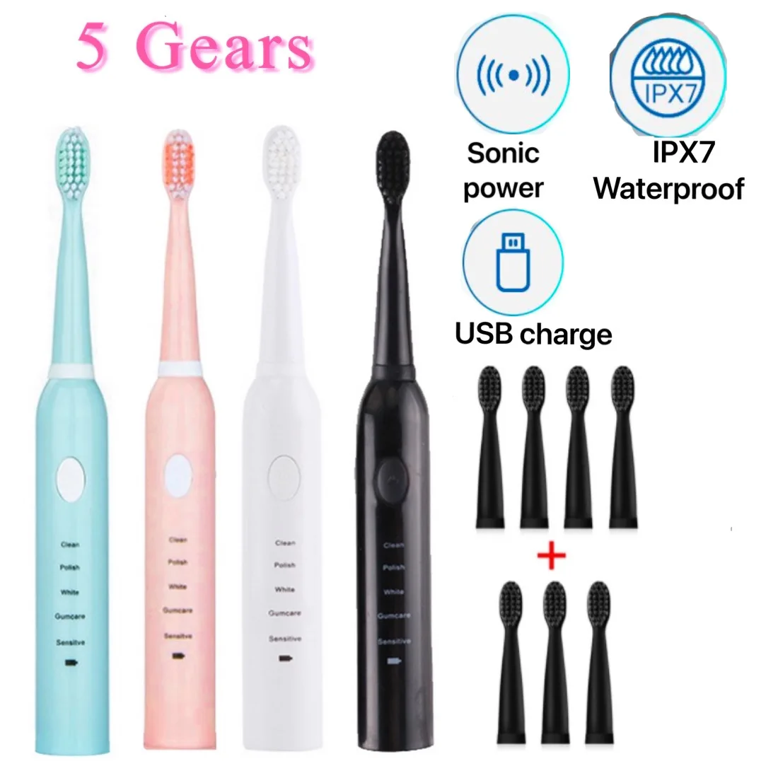 Звуковая электрическая зубная щетка USB аккумуляторная звуковая зубная щетка для взрослых водостойкая мощная отбеливающая зубная щетка 48 насадки таймер