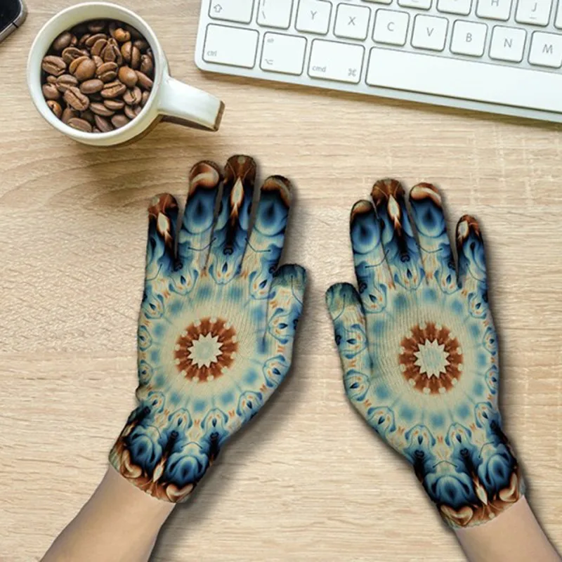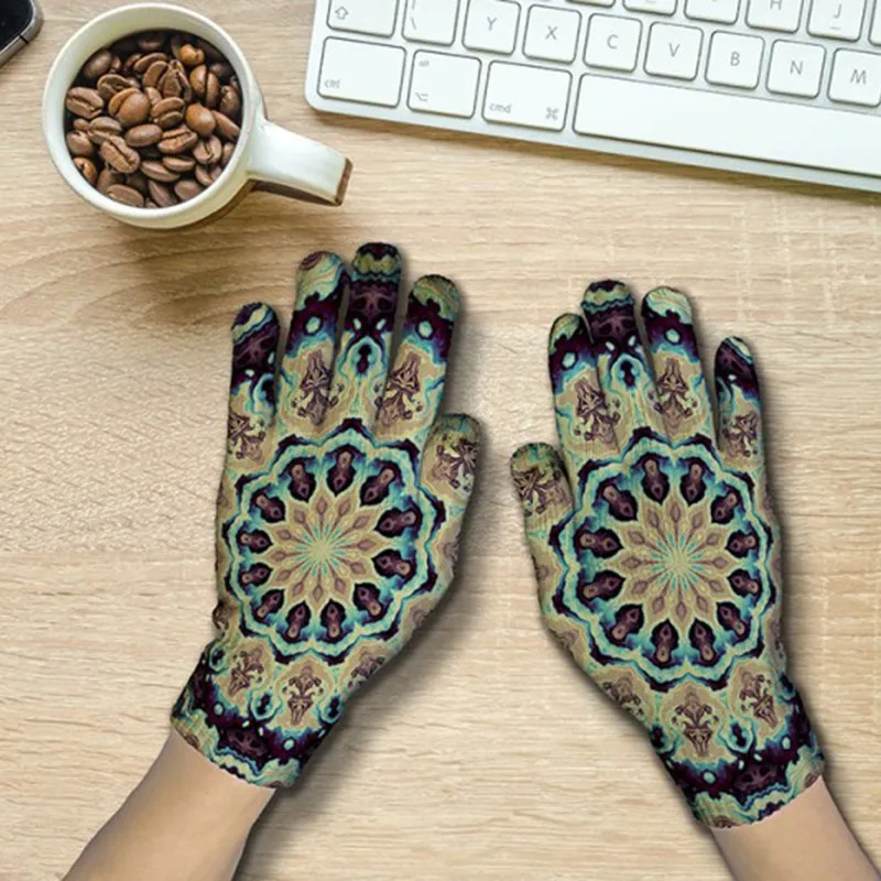 Модные перчатки в богемном стиле с узором мандалы женские и мужские зимние вязаные перчатки для экрана телефона осенние Нескользящие рукавицы