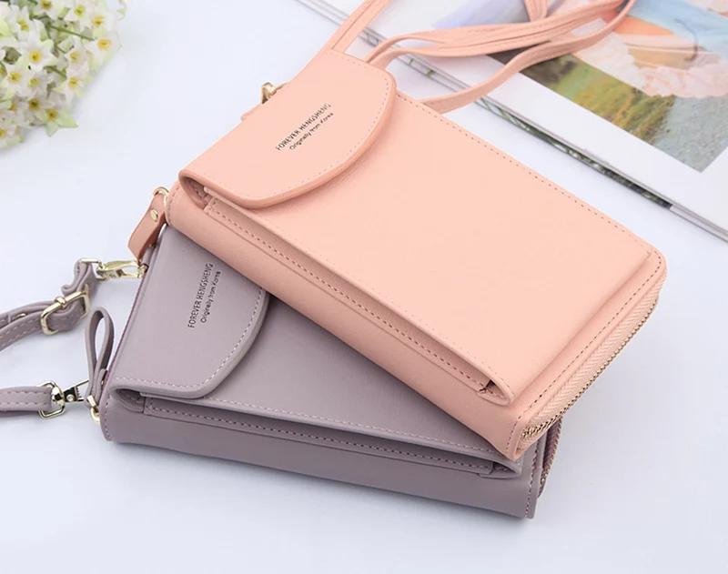 Женский однотонный кошелек 2020, кожаный ремешок на плечо, женская ...