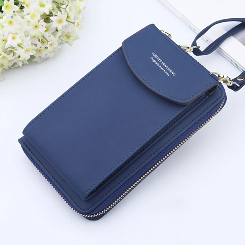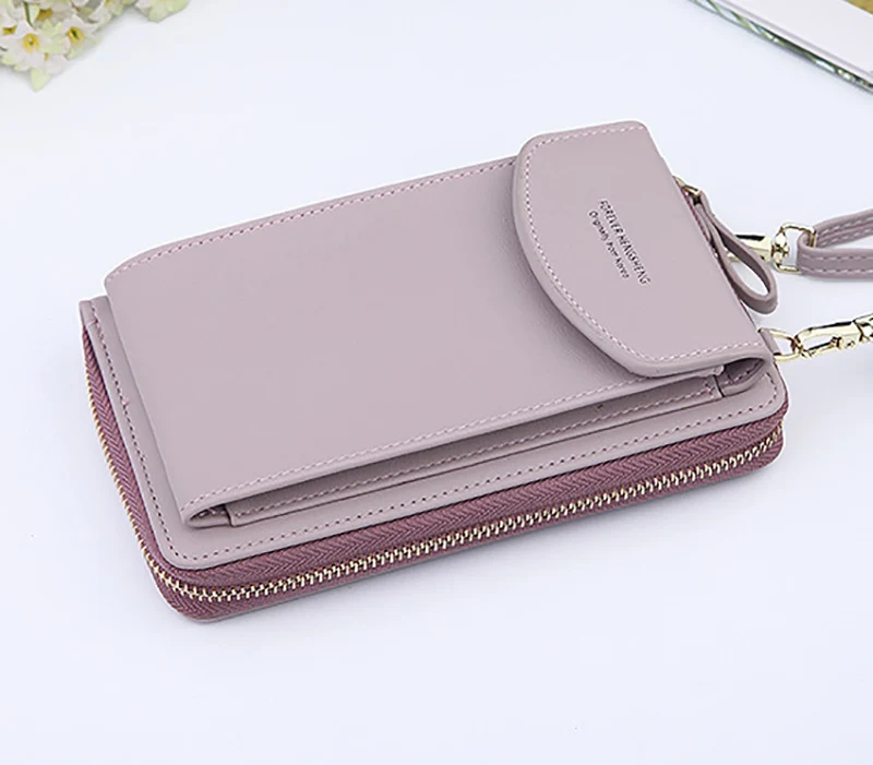 Кошелек женский, кожаный, однотонный, мобильный телефон на ремне че...