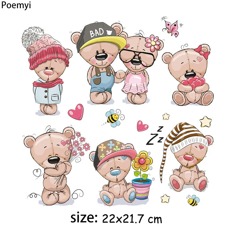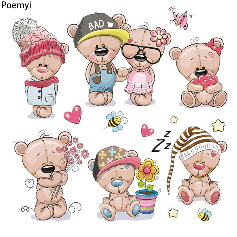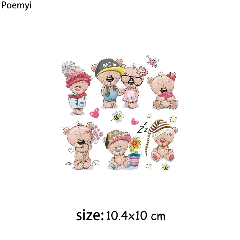 Набор нашивок Poemyi с мультяшными животными для детской одежды, термонаклейки с симпатичным медведем