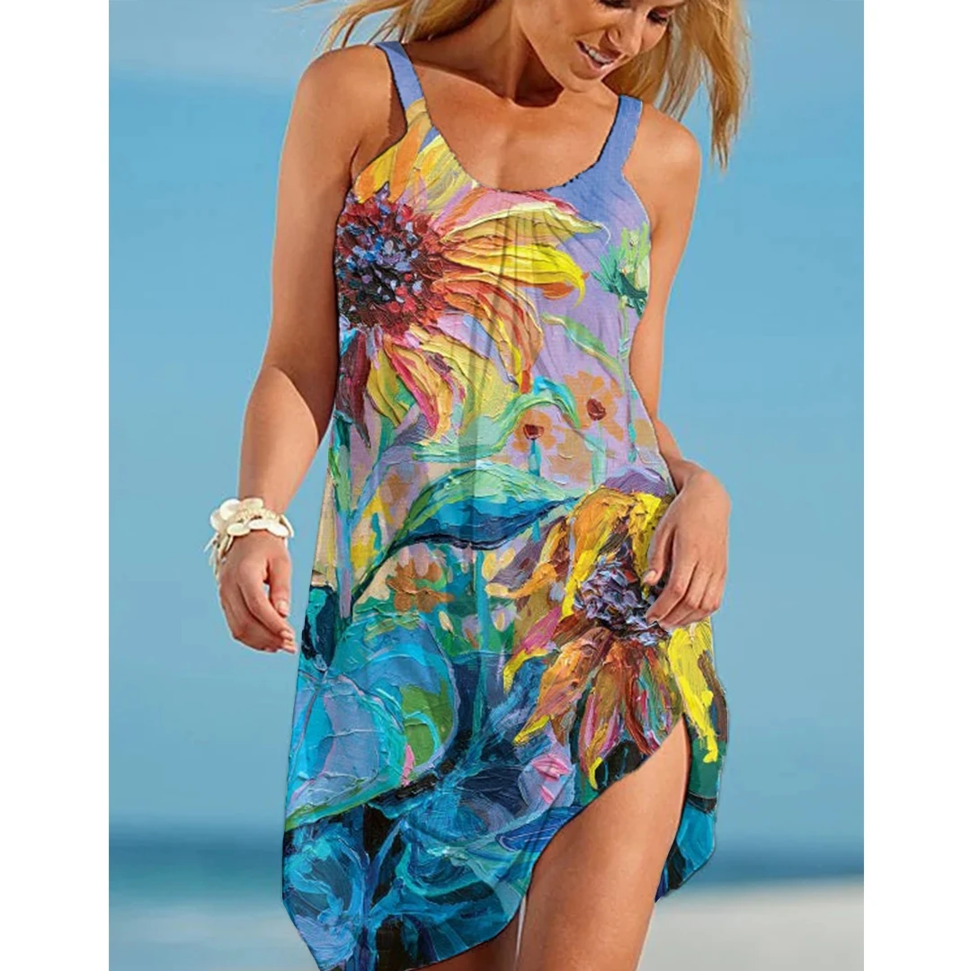 Платье-миди женское с цветочным принтом, богемный модный вечерний сарафан на бретелях, с бабочкой, элегантный наряд для вечеринок, без рукавов