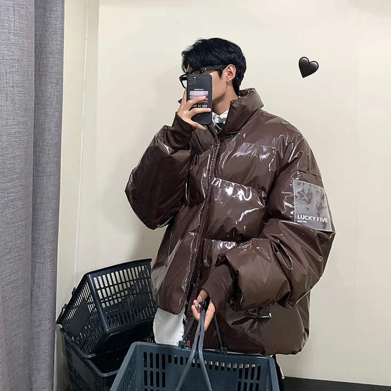 Парка INXYZ Мужская однотонная на флисе, базовая теплая Повседневная пузырьковая куртка в стиле оверсайз, блестящая, Осень-зима 2022