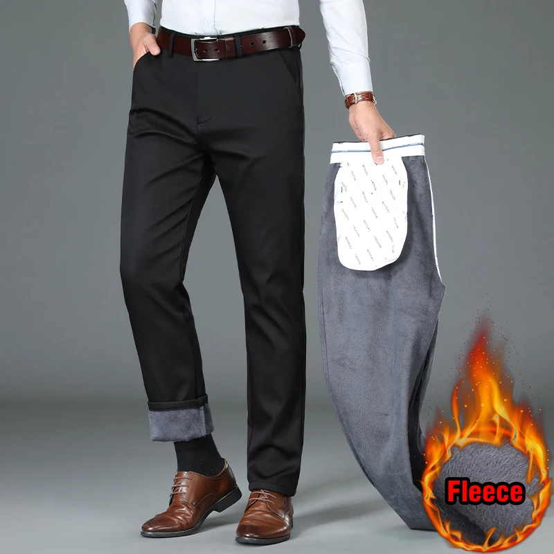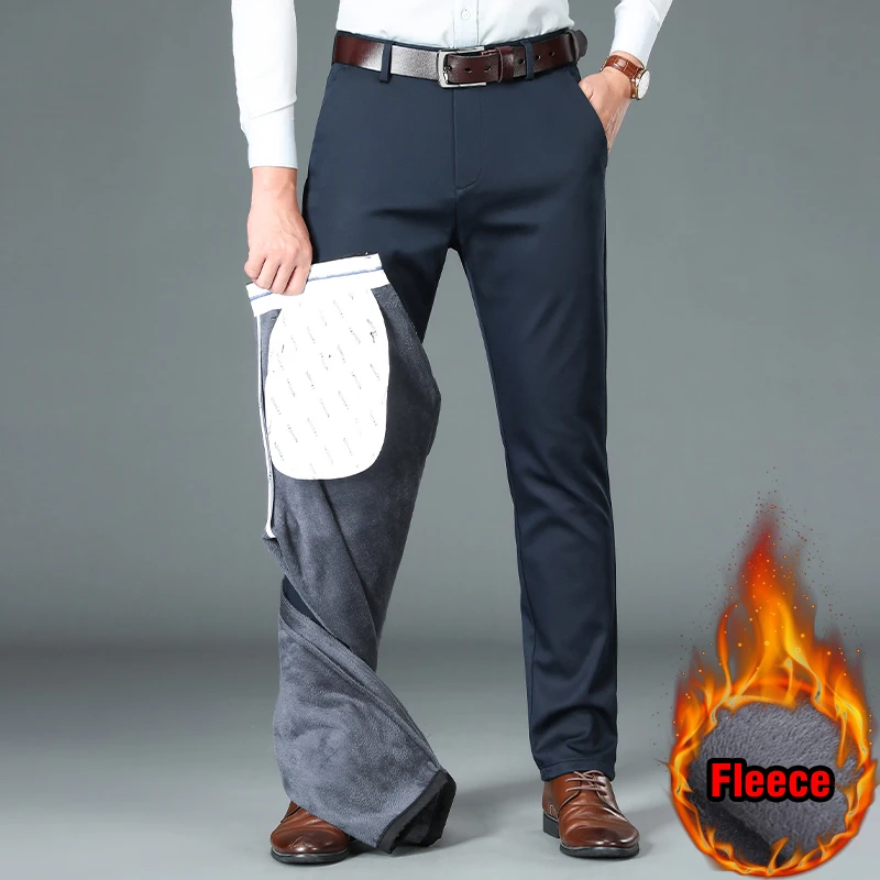 Зимние мужские флисовые повседневные брюки, утепленные, деловые, модные прямые, синие, черные, хаки, вельветовые брюки, мужские