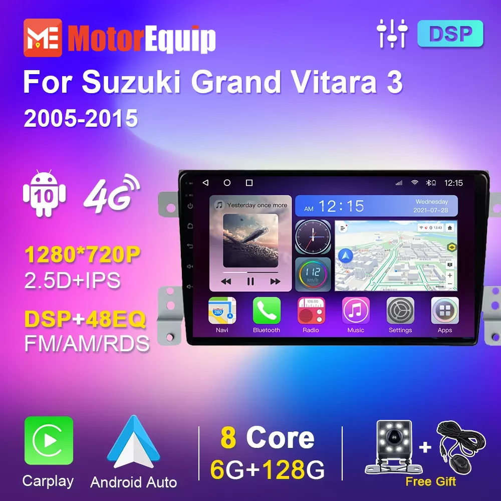 Автомагнитола с рамкой для Suzuki Grand Vitara 3 2005-2015, автомобильное радио, стерео, видео, аудио, Carplay, Android 10, DSP, 8 ядер, IPS экран