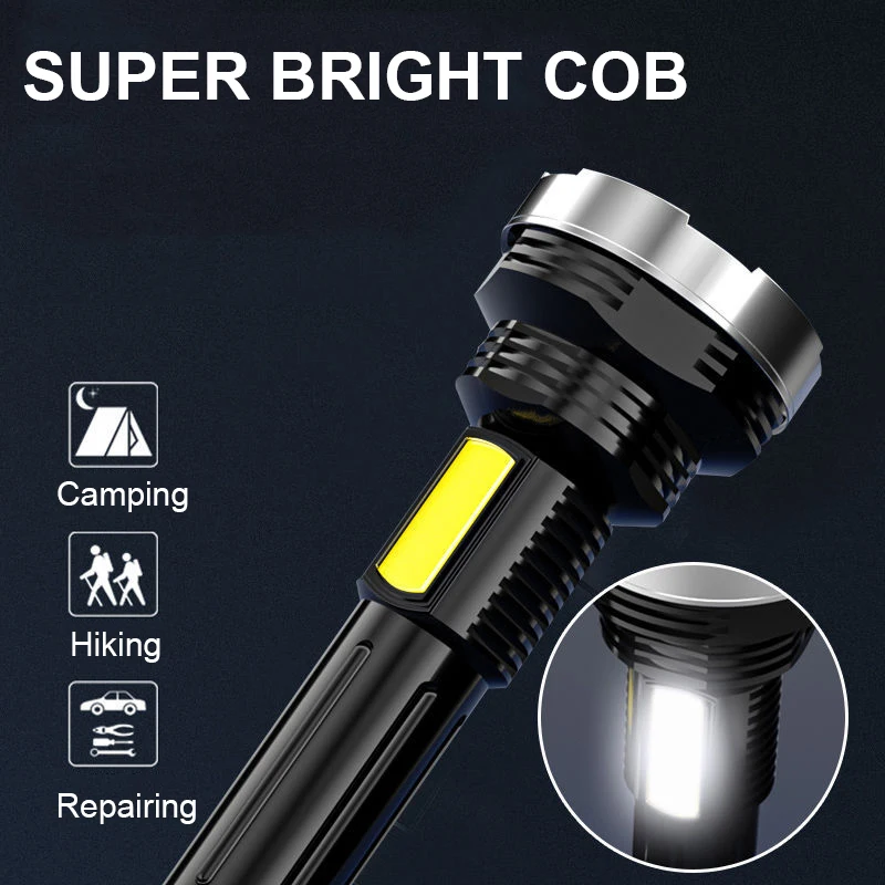 Яркий светодиодный + COB фонарик, 4 режима, водонепроницаемый перез...