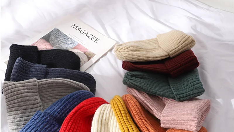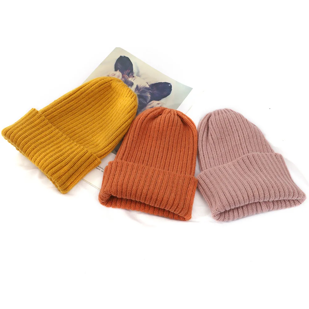 Однотонная вязаная шапка, женская зимняя теплая шерстяная шапка, эластичная Шапка-бини, Осенняя шапка для отдыха, уличная Лыжная шапка, шапка с черепом, черная, Красная шапка