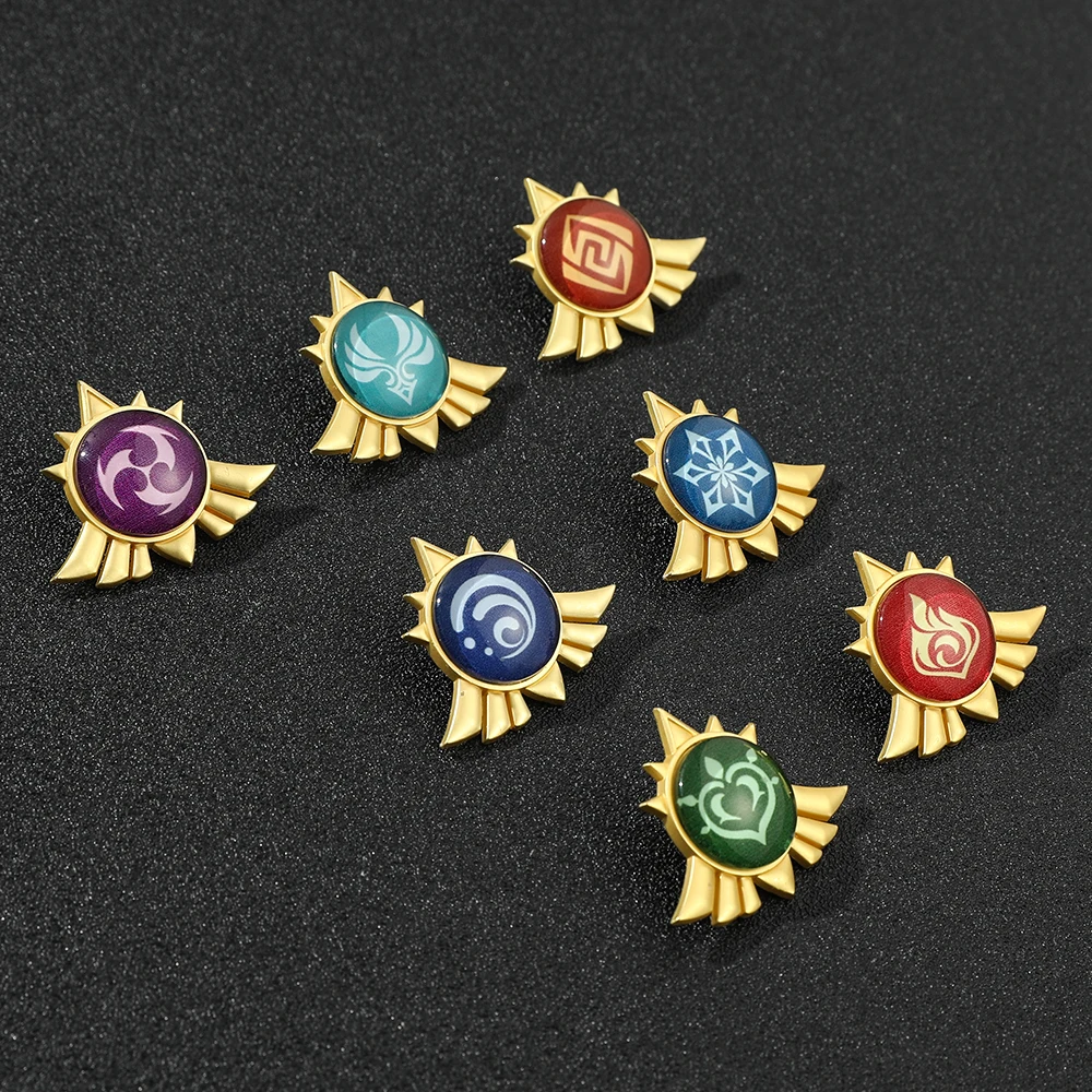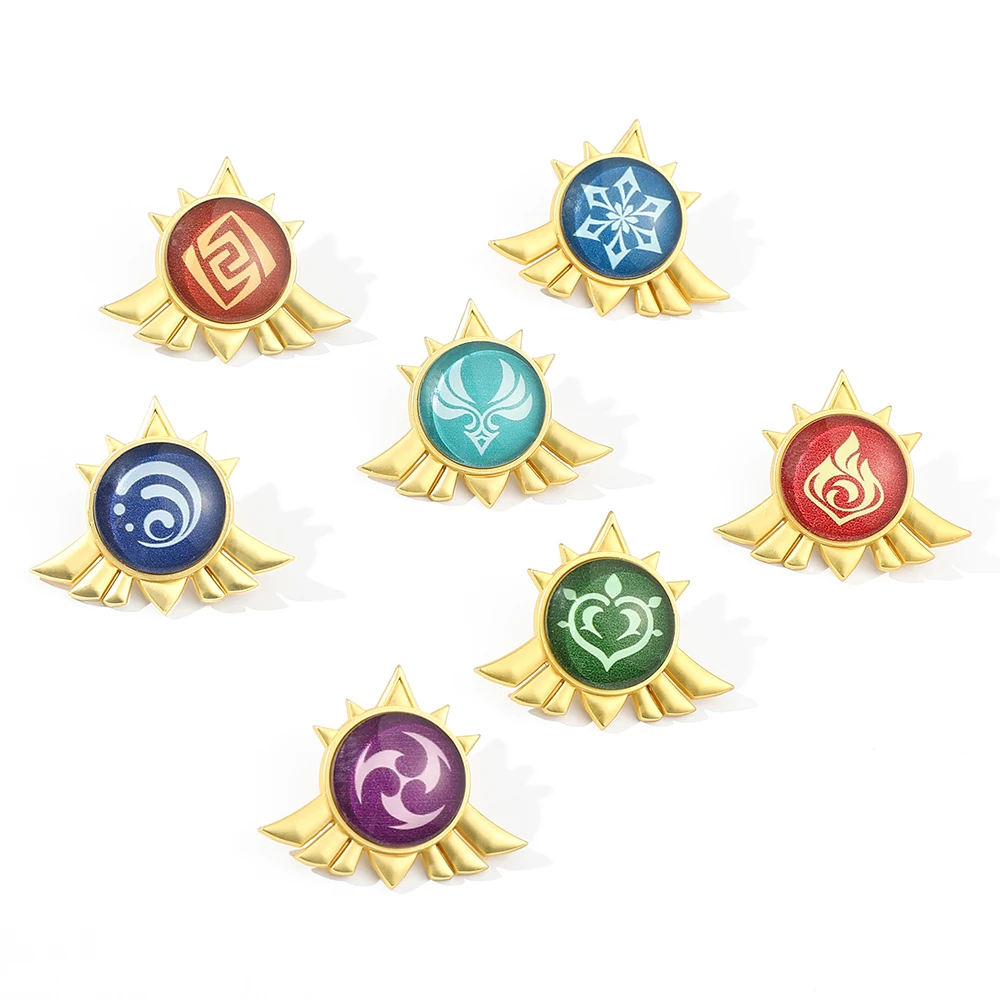 Брошь аниме Genshin Impact, светящиеся значки семь элементов Vision...