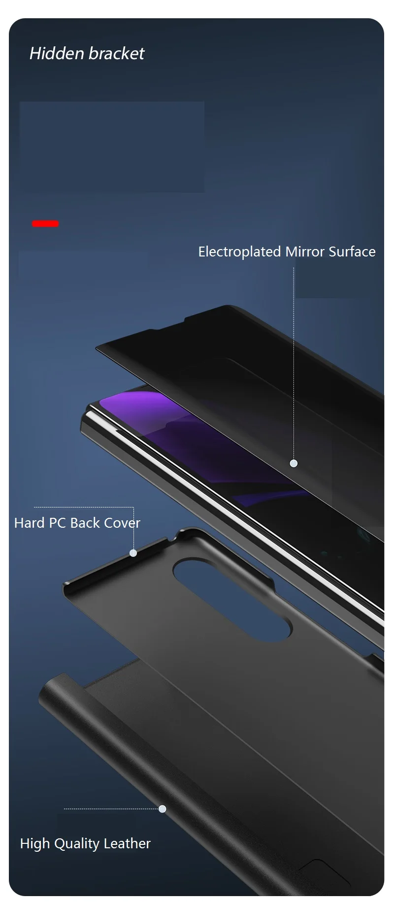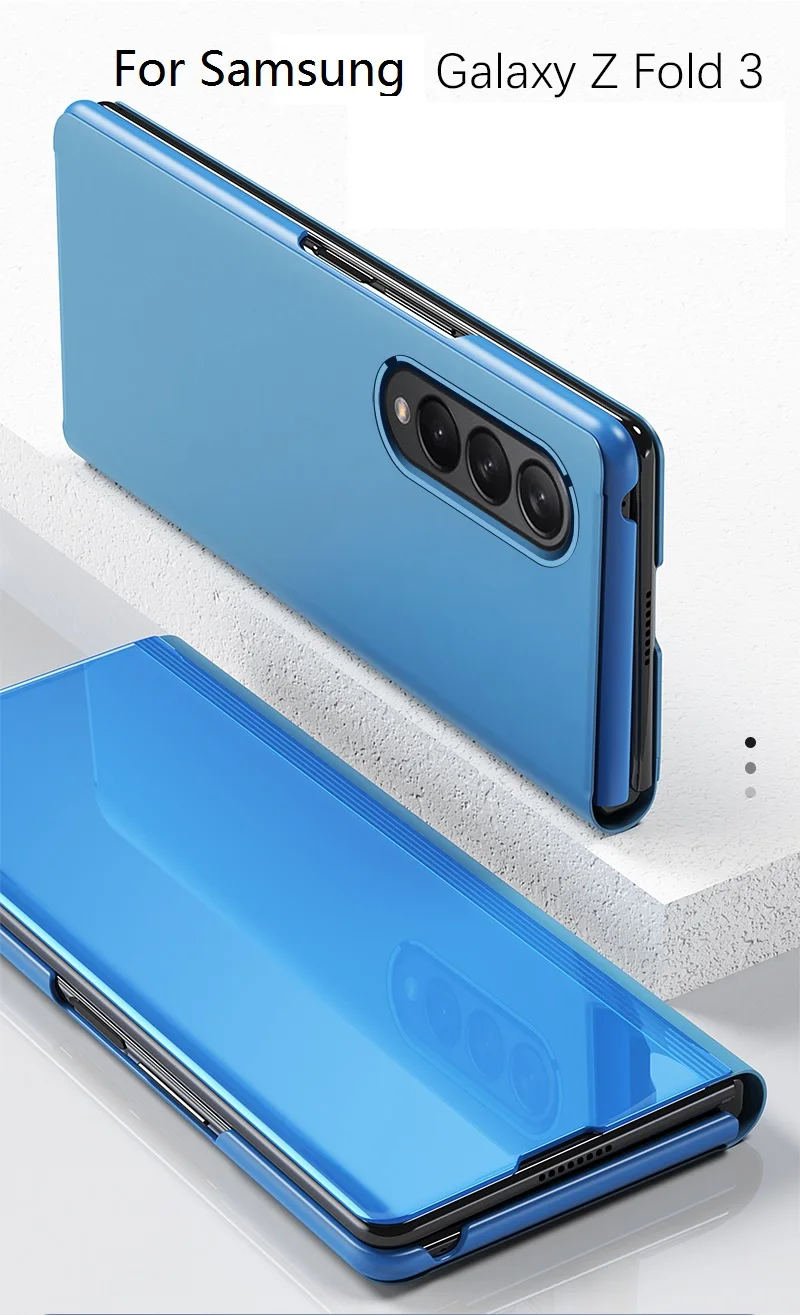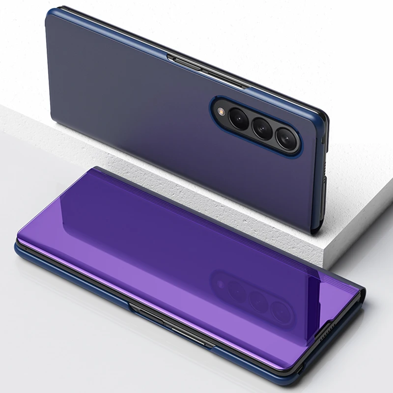 Зеркальный чехол для Samsung Z Fold3, чехол-книжка с тройной подставкой, кожаный зеркальный чехол для Samsung Galaxy Z Fold 3, чехол для телефона, чехол, чехол