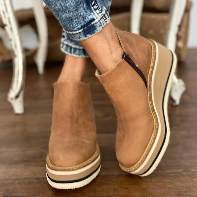 Женские ботильоны на танкетке с застежкой-молнией, женские современ...