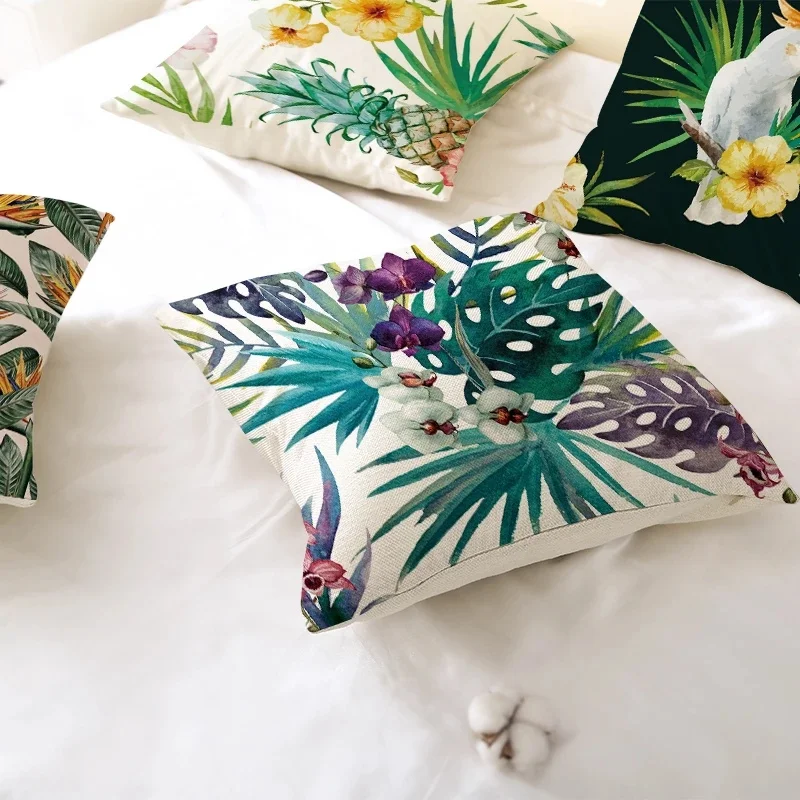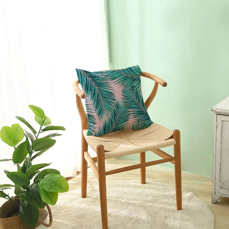 45*45 см наволочка из полиэстера с абстрактным принтом, наволочка для диванной подушки, наволочка для подушки с геометрическим рисунком тропических листьев и зеленых растений, квадратная наволочка для подушки, домашний декор