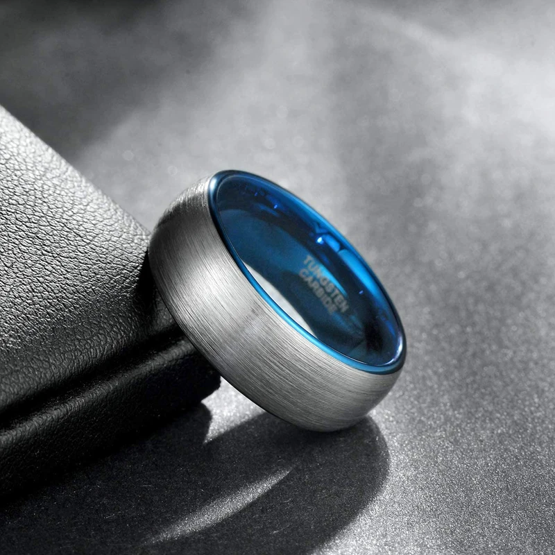 Красиво изготовленное кольцо легко носить с хорошим весом из-за вольфрама Мне нравится внутренняя отделка синего цвета, которая также показывает на периметрах Сервис надписей фантастический и точный!