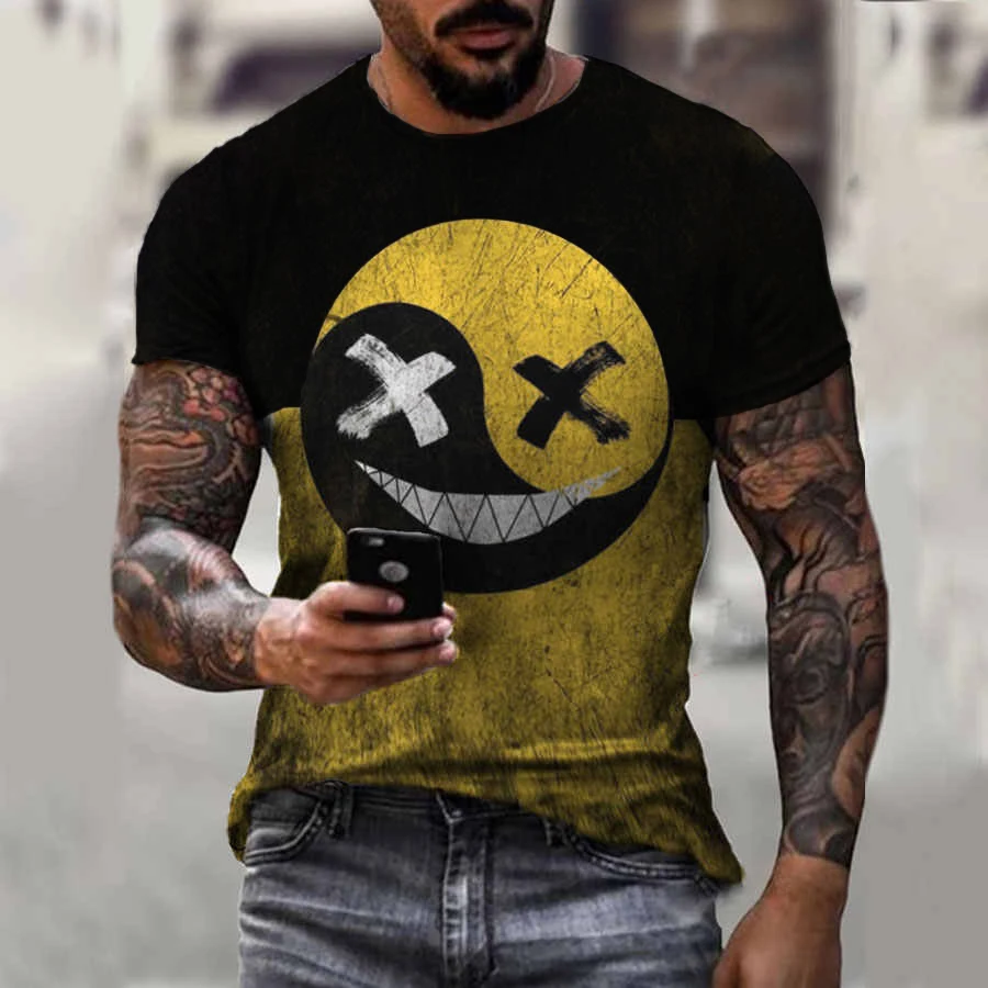 Мужская футболка с 3D-принтом зла и смайлика, Повседневная футболка...