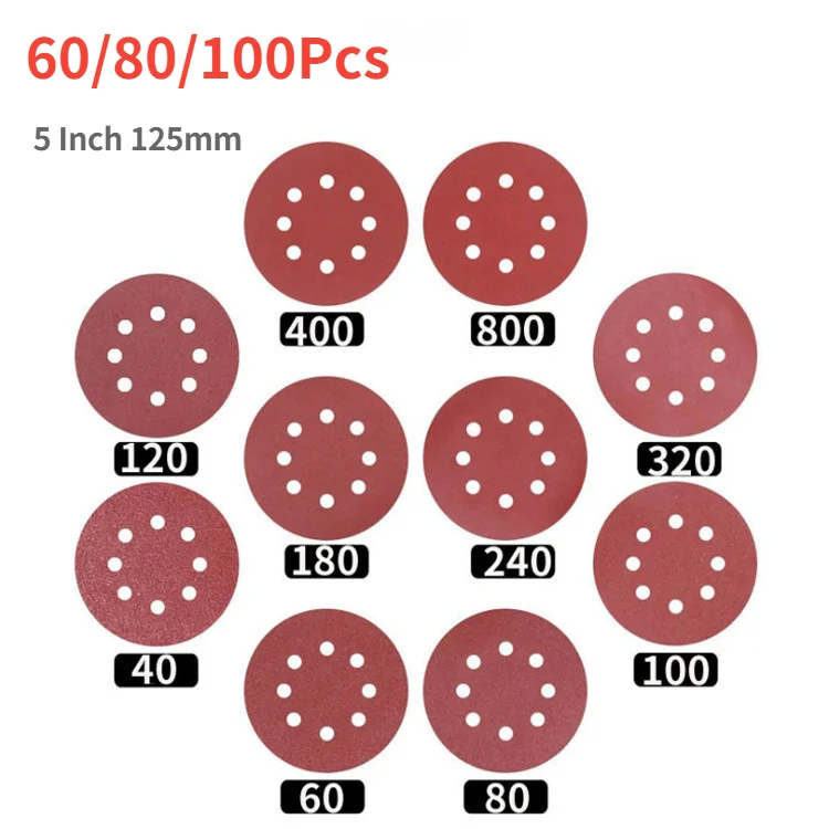 Круглый шлифовальный диск, 40-125 Грит, 5 дюймов, мм