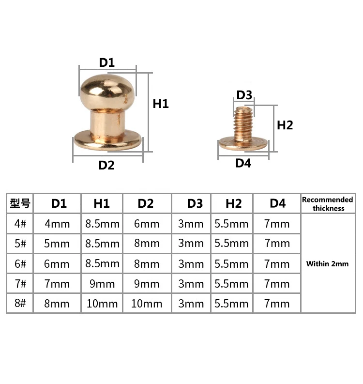 Винтовые заклепки с ручкой из металлического сплава, 20 комплектов, ремешки для рукоделия, кожаный ремешок, ремешок для часов, круглые заклепки с головкой монаха, шипы, декоративные застежки для ногтей