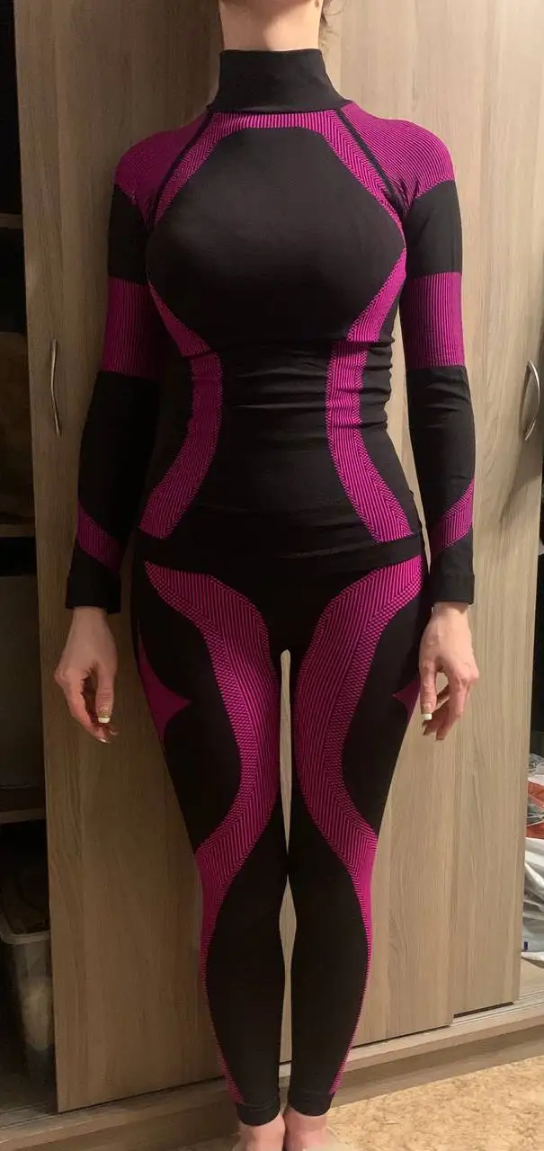 Хороший костюм, правда я не ожидала что он такой компрессионный. Оказалось что мне желательно размер М на верх и S вниз, так как кажется что даже с моим 1,5 размера груди верх маловат немного. Дышать не тяжело, но подмышки поджимает немного)