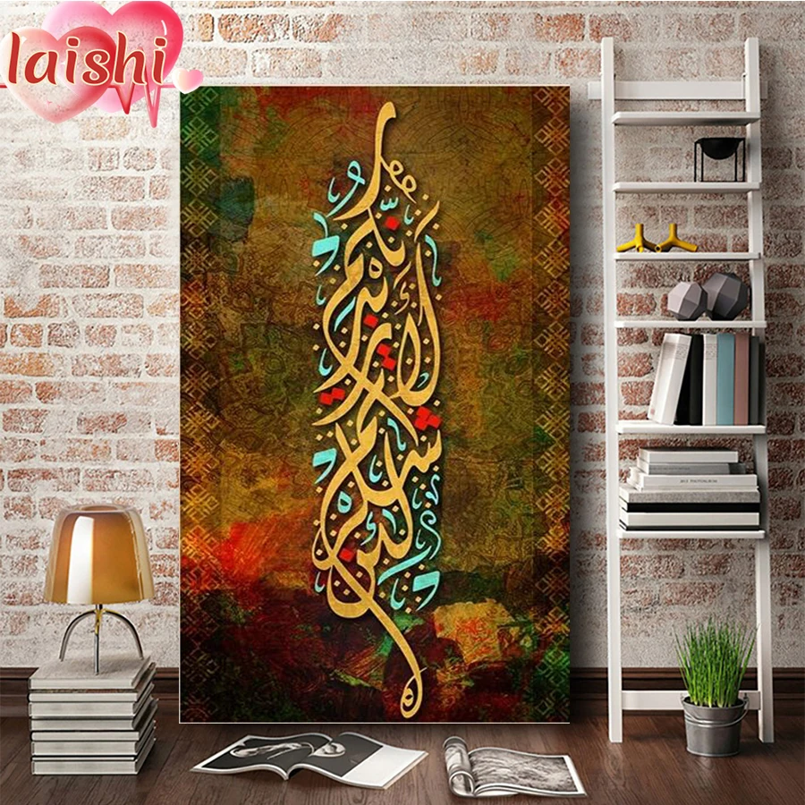 Алмазная 5d-картина сделай сам, исламский шрифт, полная квадратная картина, круглая Алмазная вышивка, яркая картина, ручная работа