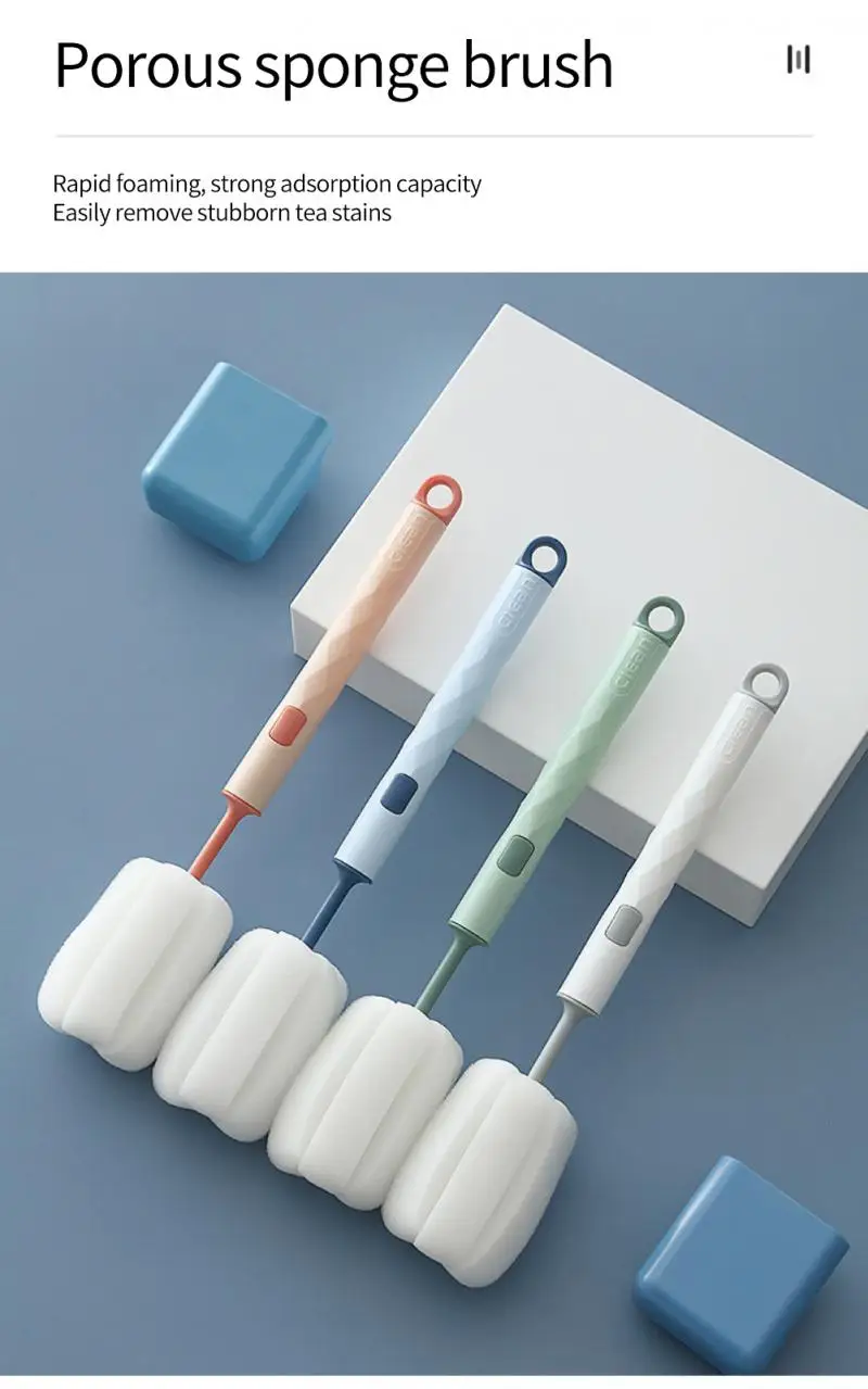 Щетка для бутылок Бытовая с длинной ручкой, губка для мытья бутылок...