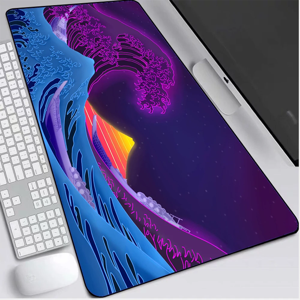 Коврик для мыши с RGB-подсветкой, большой пейзаж волн, геймерский Н...