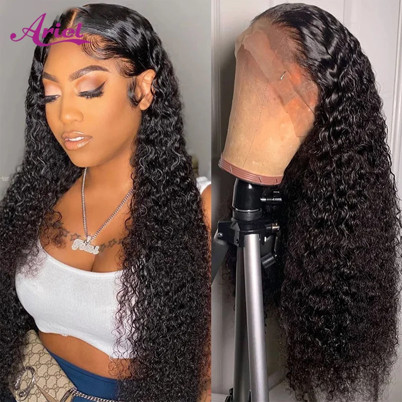 Парик Ариэль 180 плотность кудрявые кружевные передние парики из человеческих волос индийские 13x 4 кружевные Передние Прозрачные кудрявые парики 30 32 длинный парик