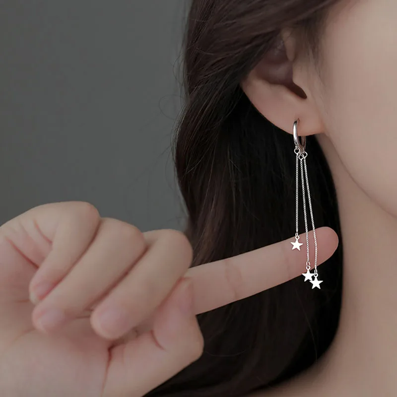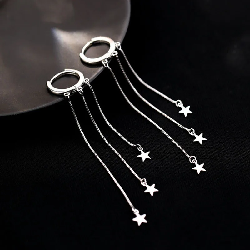 Длинные серьги-кольца XIYANIKE серебристого цвета с кисточками и зв...