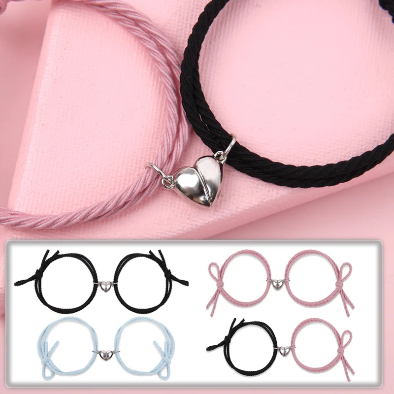 2 шт., магнитный браслет с подвеской в виде сердца, для мужчин и же...