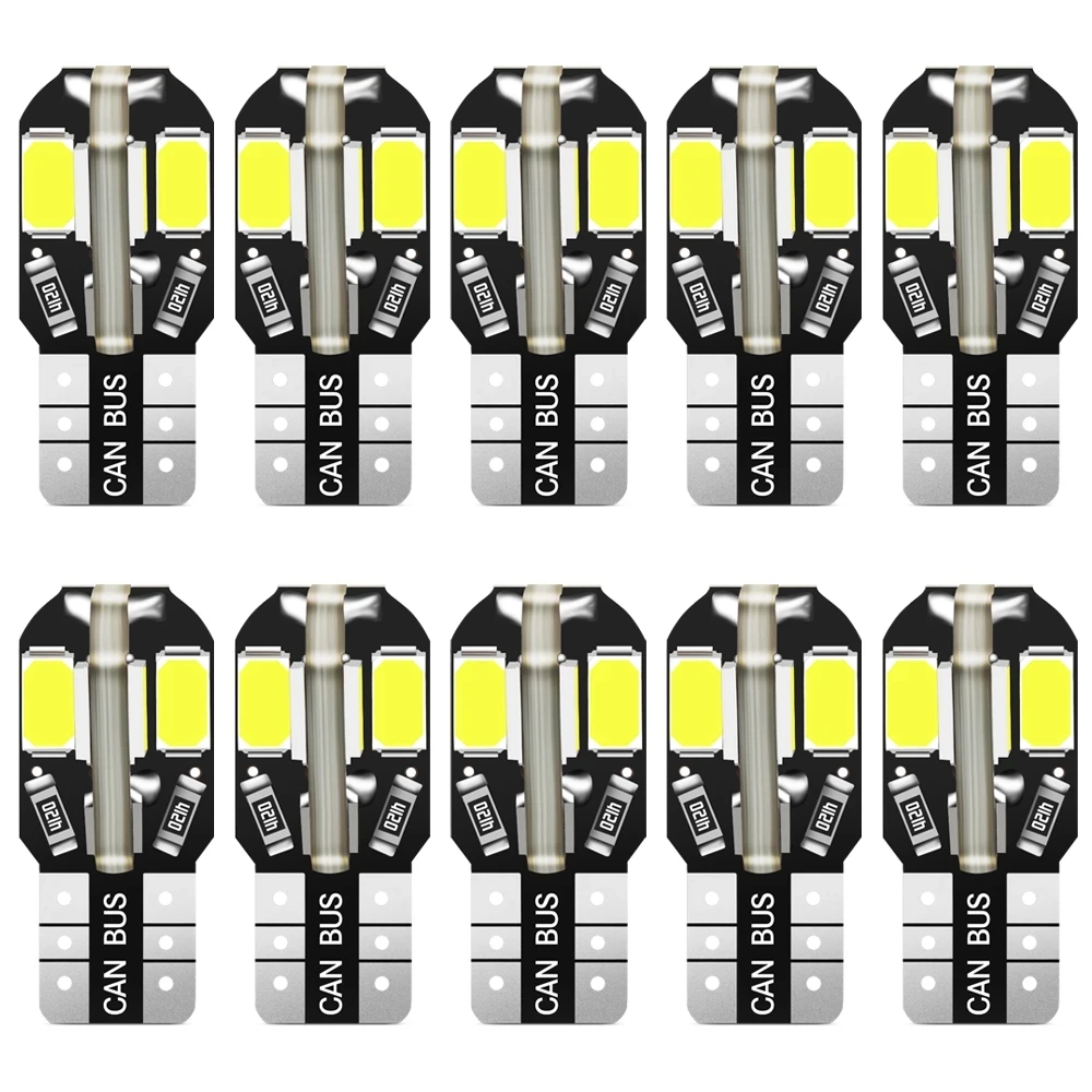 Светодиодные лампы W5W T10 Canbus 5730 8SMD 12 в 6000K 194 168, 10 шт.