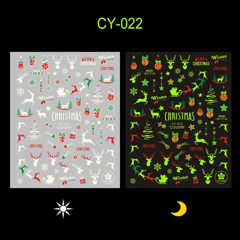 1 лист ночник светящийся стикер для ногтей 3D Рождество Хэллоуин на...