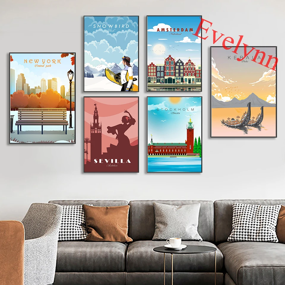 Постер для путешествий, ЮАР, Аризона, Нью-Йорк, Перу, Бали, Мадагаскарский, андалусия, Париж, Франция, декор гостиной, холст, настенные художественные принты