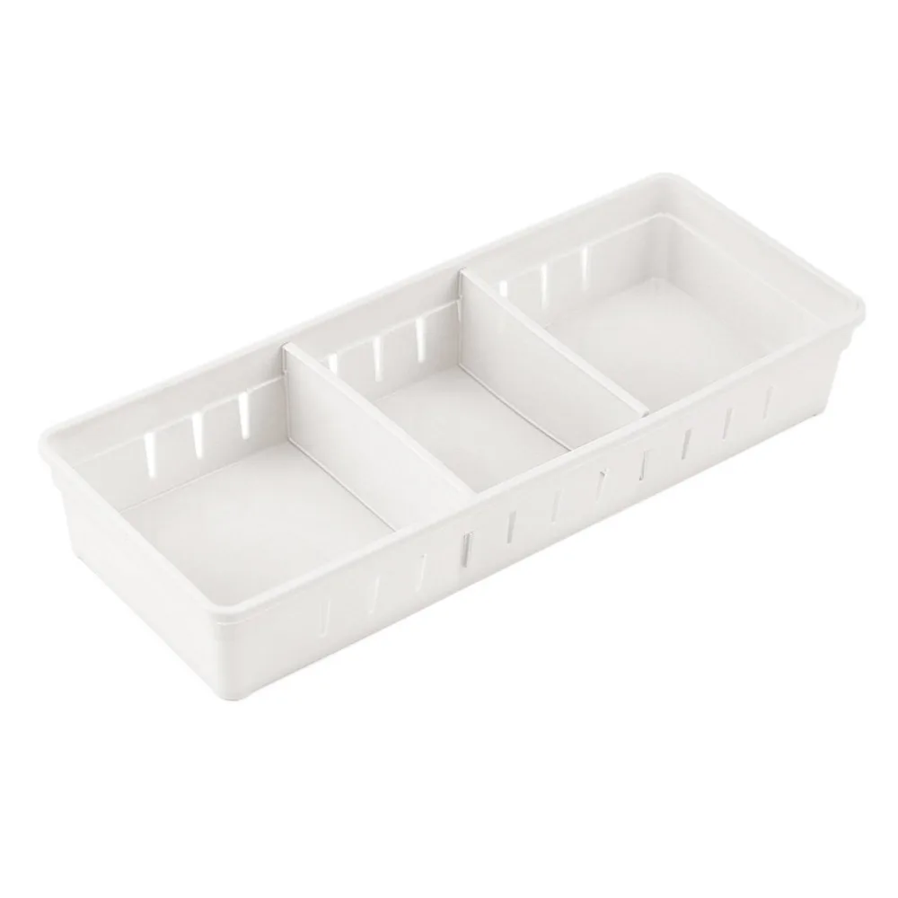 Особенности:Прочный, чтобы выдерживать тяжелые и сильные предметы, не легко деформируетсяПоставляется с отдельными отсеками, без подсеткиМожно сортировать все виды домашних принадлежностей, посуды, канцелярских принадлежностей, косметики и других мелких предметов, разбросанныхЛучший способ организовать ваши кухонные ящики, офисные ящики и комоды для спальни. Предлагаем Вам тусклый и аккуратный офис/домашняя среда.Подходит для домашнего использования на кухне и в офисе. Описание:Эти Органайзеры для хранения ящиков изготовлены из прочного пластика, который является экологически чистым и прочным.Каждый лоток имеет два разделителя, которые могут быть вывезены и перемещены свободно. Просто Отрегулируйте ящик с учетом ваших потребностей.Вы также можете поместить в него некоторые мелкие предметы, такие как закуски, косметика, канцелярские принадлежности, ножи и вилки или другие столовые приборы и т. д. Характеристики:Цвет: синий/зеленый/белыйМатериал: пластикРазмеры: S: 30*7,5*5 см/L: 30*11,5*5 смКол-во: 1 шт. Посылка включает в себя:1 х коробка для хранения
