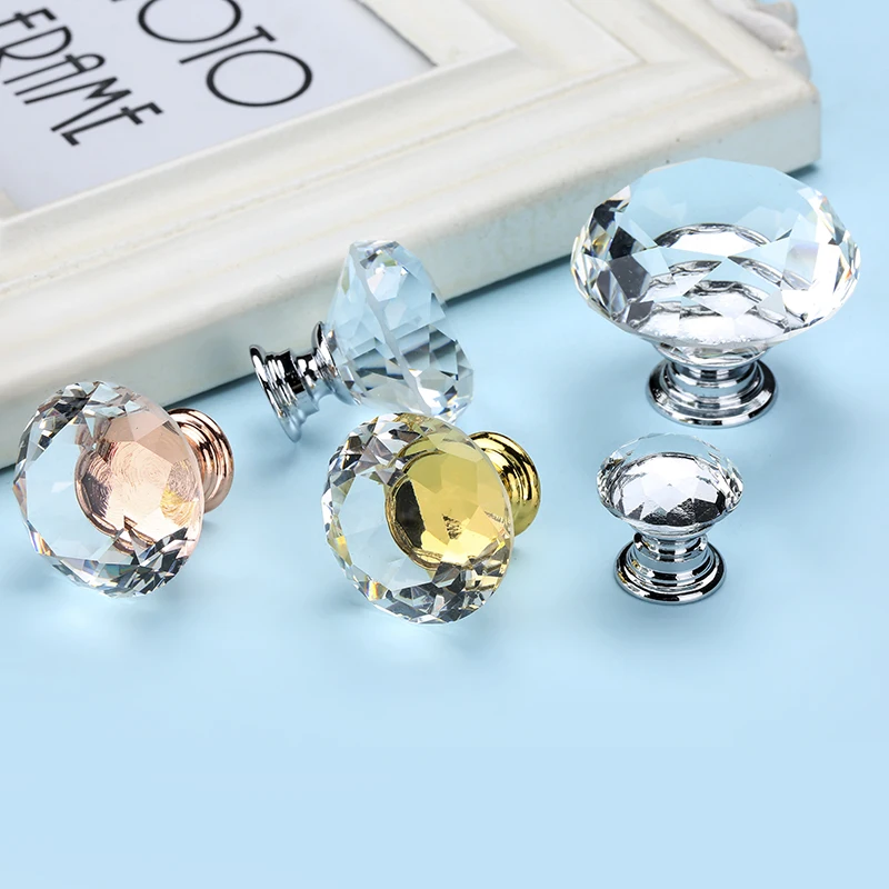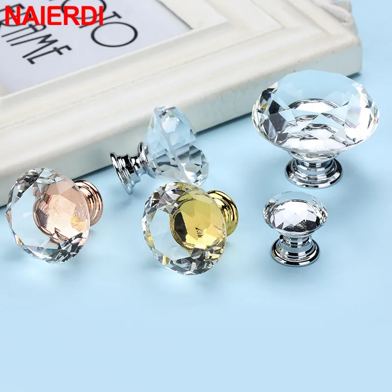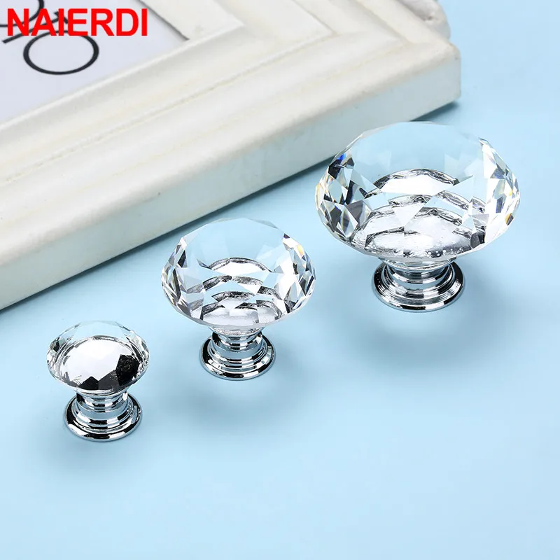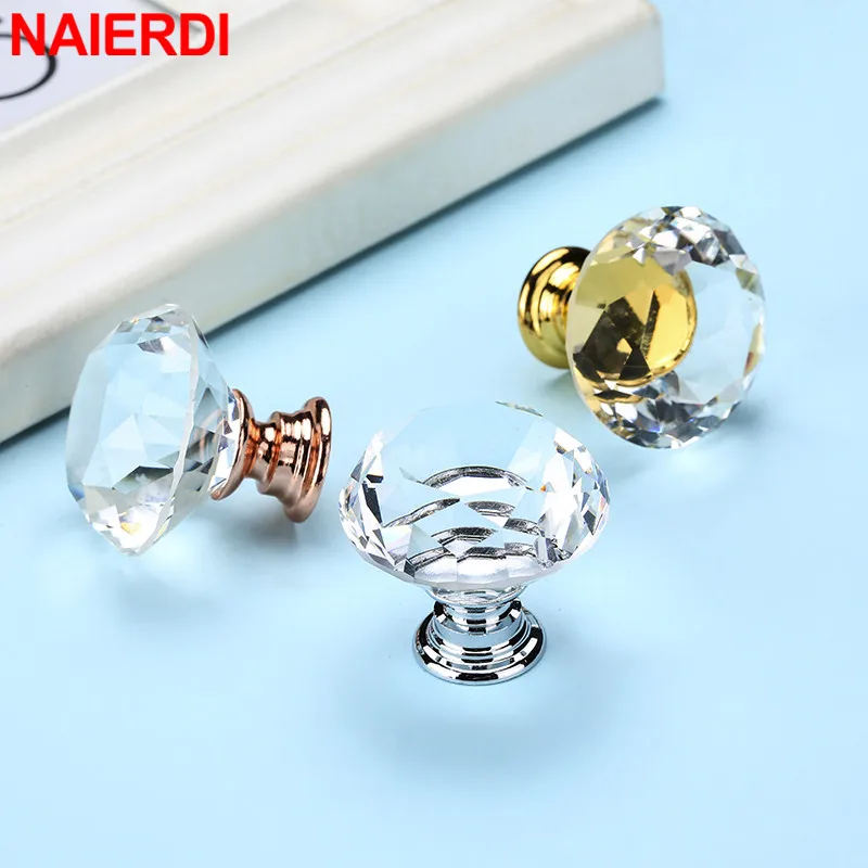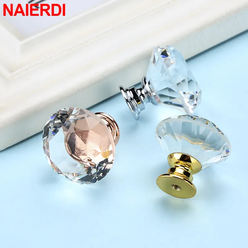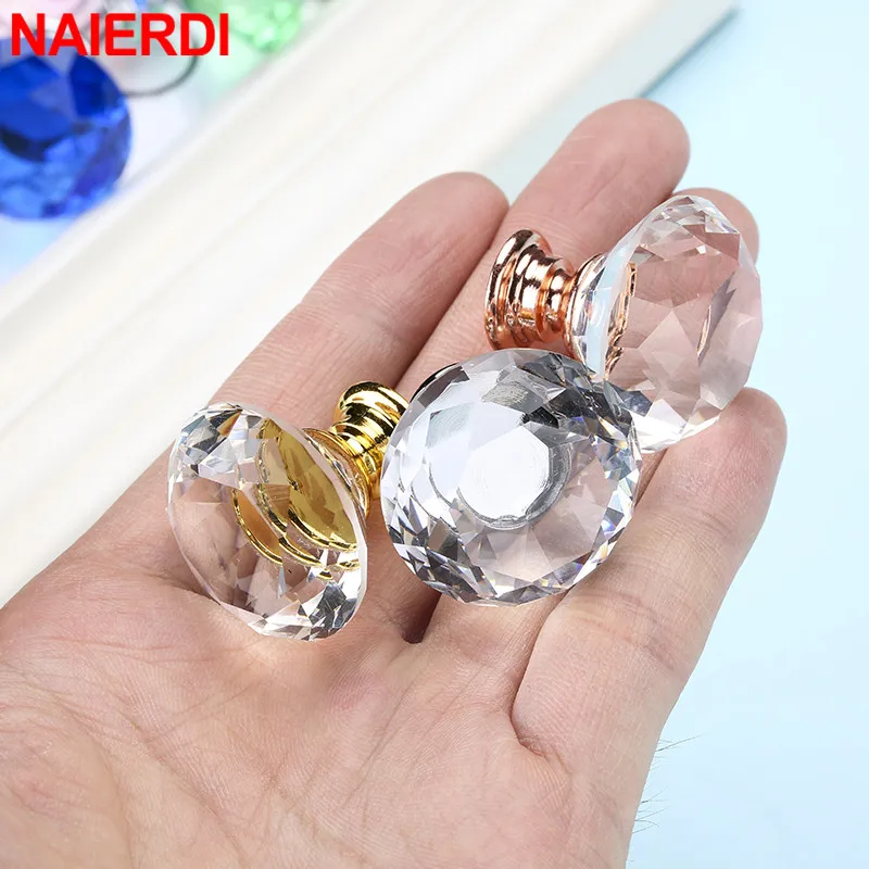 Ручки NAIERDI их стеклянного хрусталя, в форме бриллианта, ручки для шкафов и ящичков, выдвижных кухонных ящиков, дверные ручки, ручки для шкафов, фурнитура