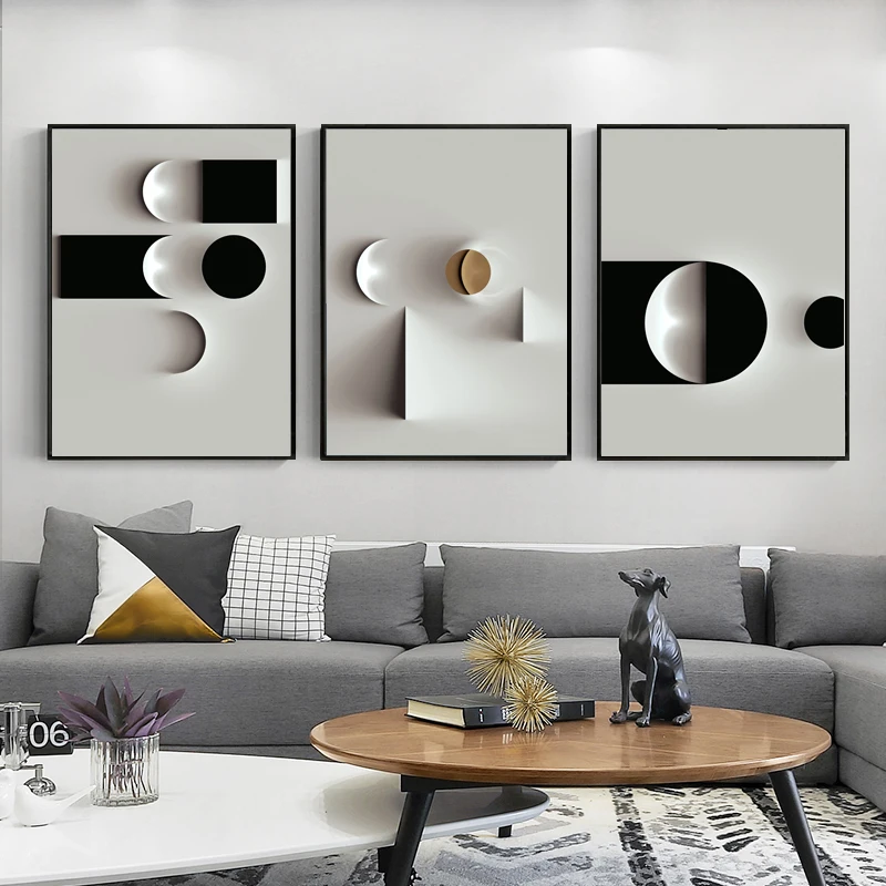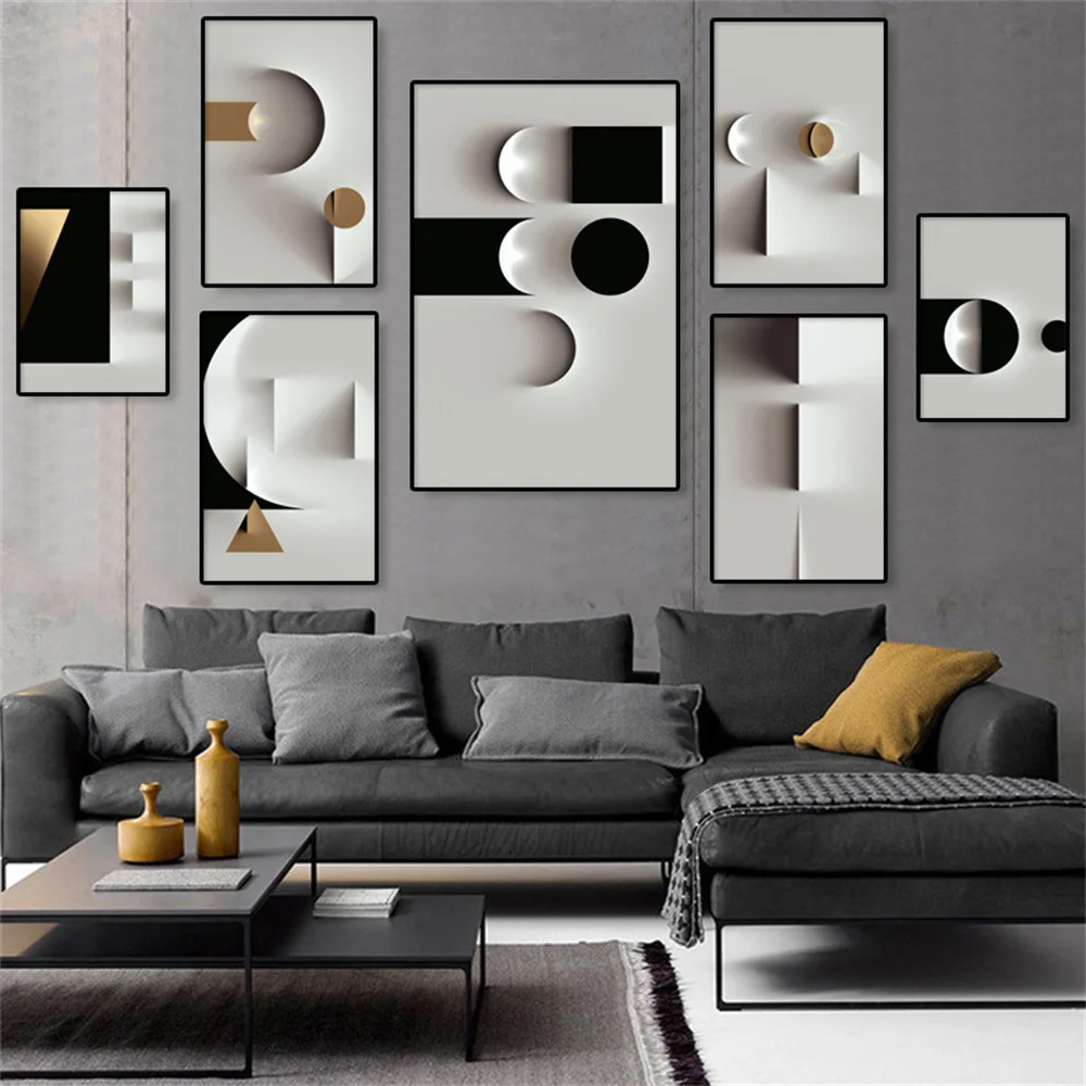 Минималистичная Картина на холсте В индустриальном стиле, черная, белая и серая Геометрическая фотография, настенное украшение для столовой