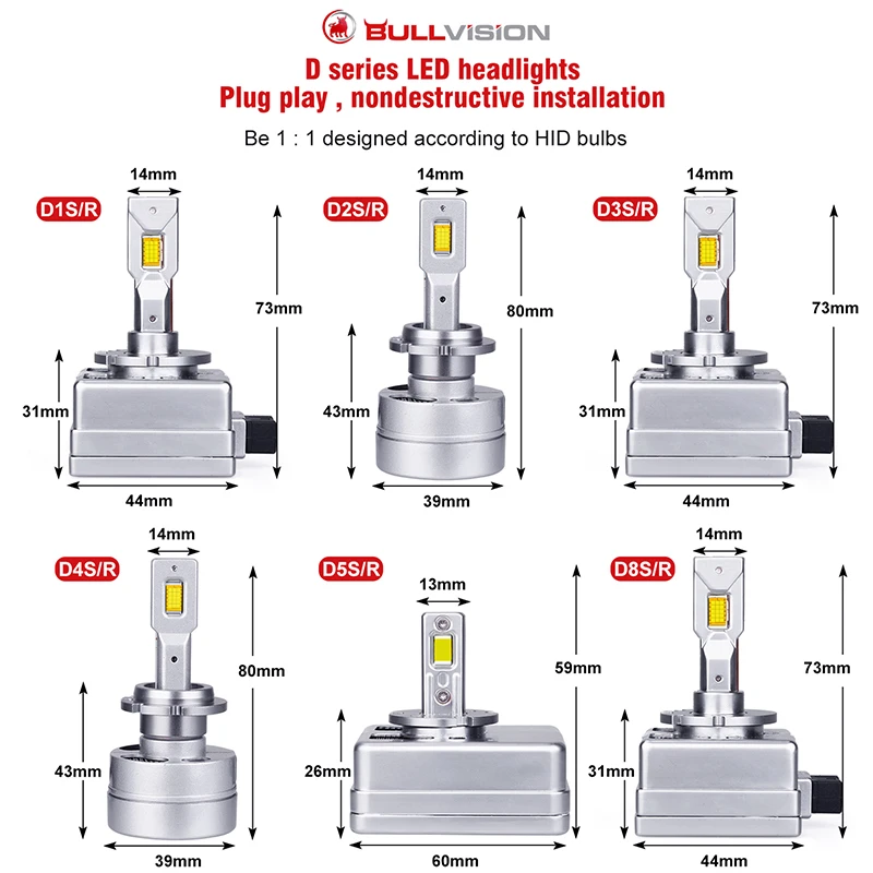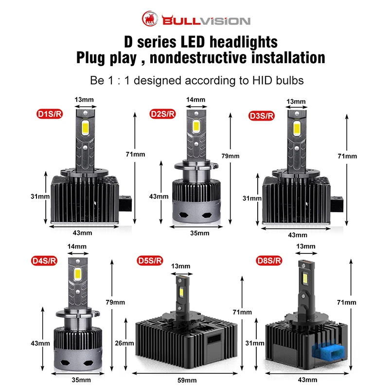 Светодиодные фары Bullvision D3S HID D1S D2S D4S D5S D8S D1R D2R D3...