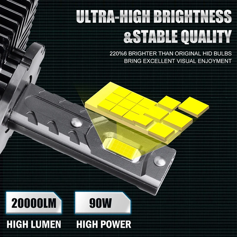 Автомобильная светодиодная лампа для фар, 6500 К, 90 Вт, лм