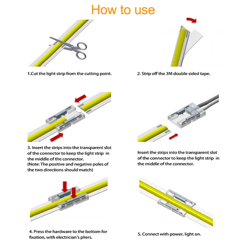 10 шт. 2-контактный разъем для светодиодной ленты 8 мм 10 мм для 5050 2835 3528 COB Светодиодная лента прозрачный односторонний разъем IP20
